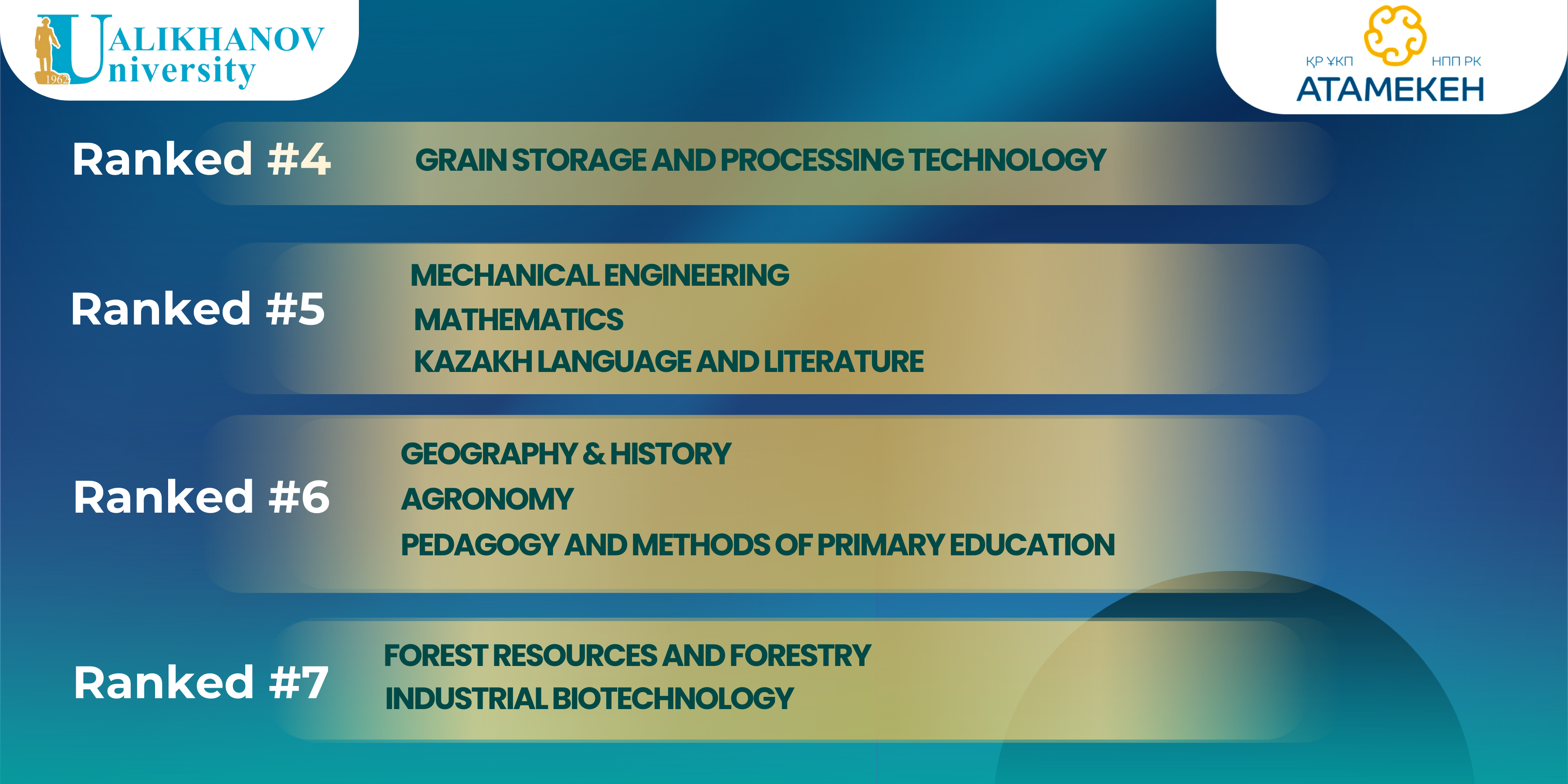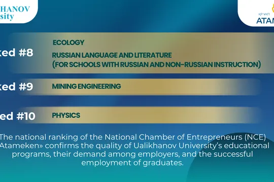 Ualikhanov University has been named among the TOP 10 in the 2026 National Ranking of Educational Programs, conducted by the Atameken National Chamber of Entrepreneurs. Several of the University’s programs were recognized as some of the best in Kazakhstan, highlighting the high quality of specialist training.