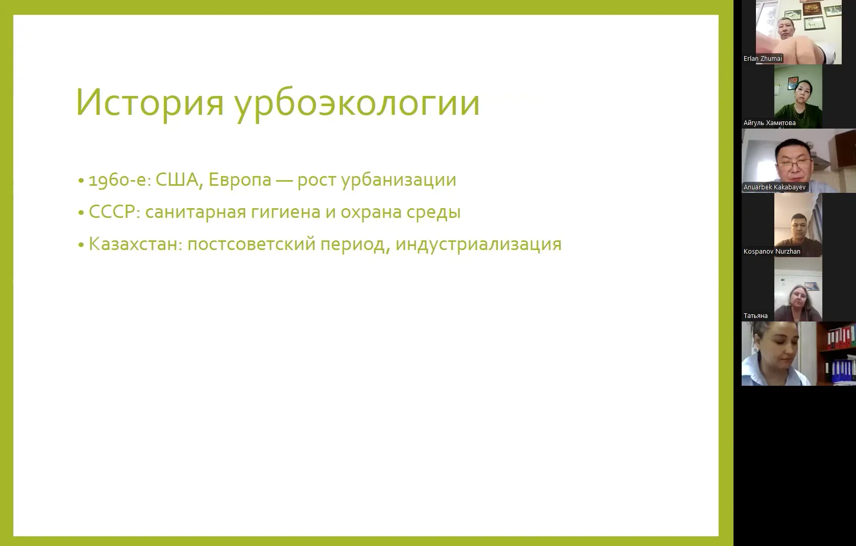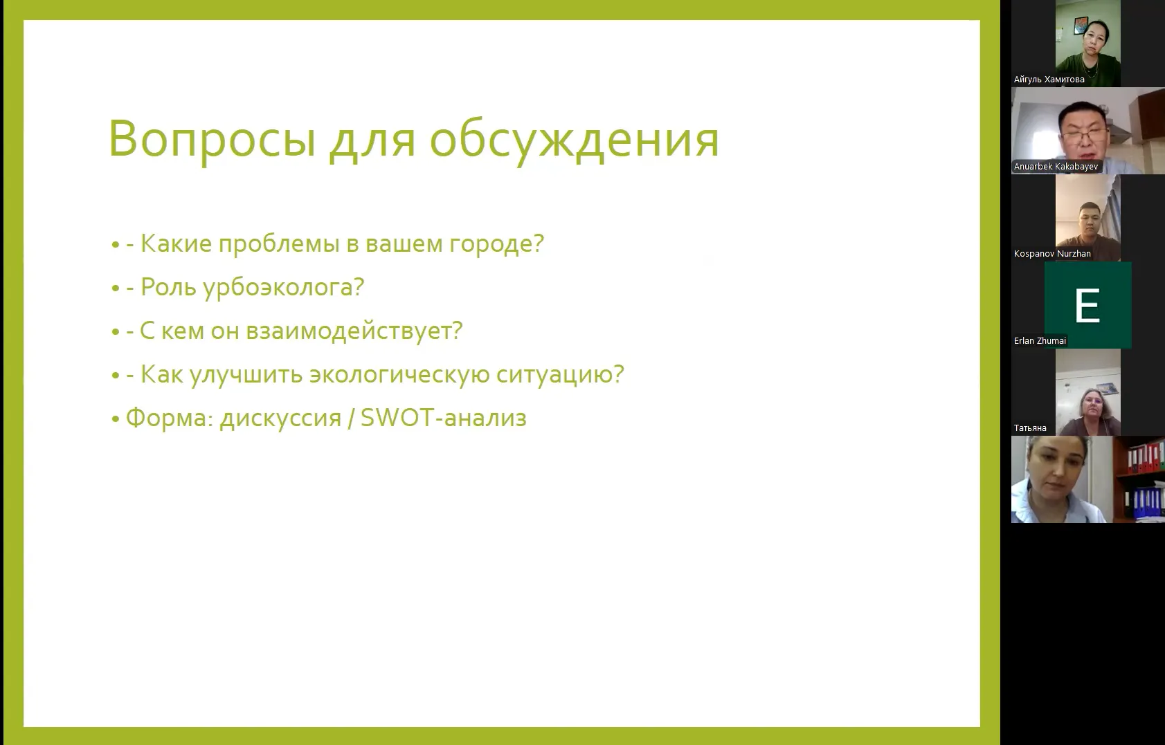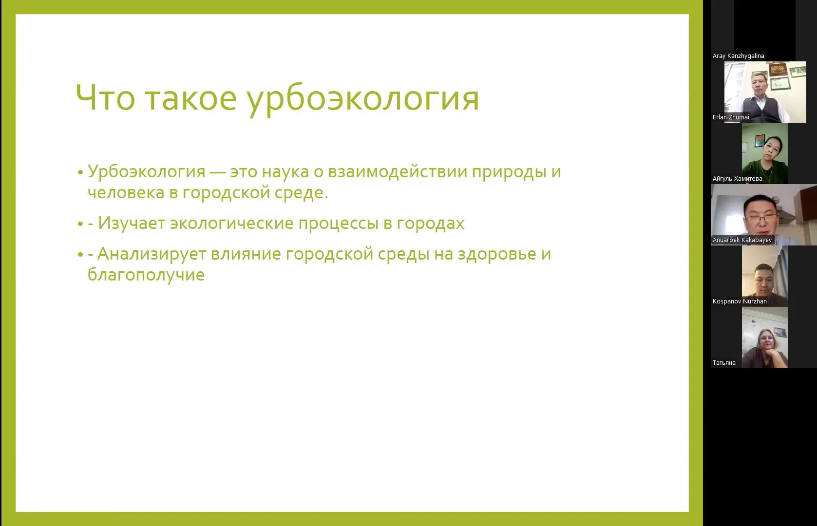 Бағдарлама қалалардың экологиялық тұрақтылығы, табиғи ресурстарды басқару, қалалық ортаға циклдік экономика принциптерін енгізу саласында білім мен дағдыларды дамытуға, сондай-ақ қалалық аймақтардың экологиялық жағдайын бағалау және жақсарту бойынша практикалық дағдыларды қалыптастыруға бағытталған. Қатысушылар заманауи экологиялық мониторинг әдістерімен, қалалық экожүйелерді талдау және қалалық орта үшін тұрақты шешімдер жобалау тәсілдерімен таныстырды.