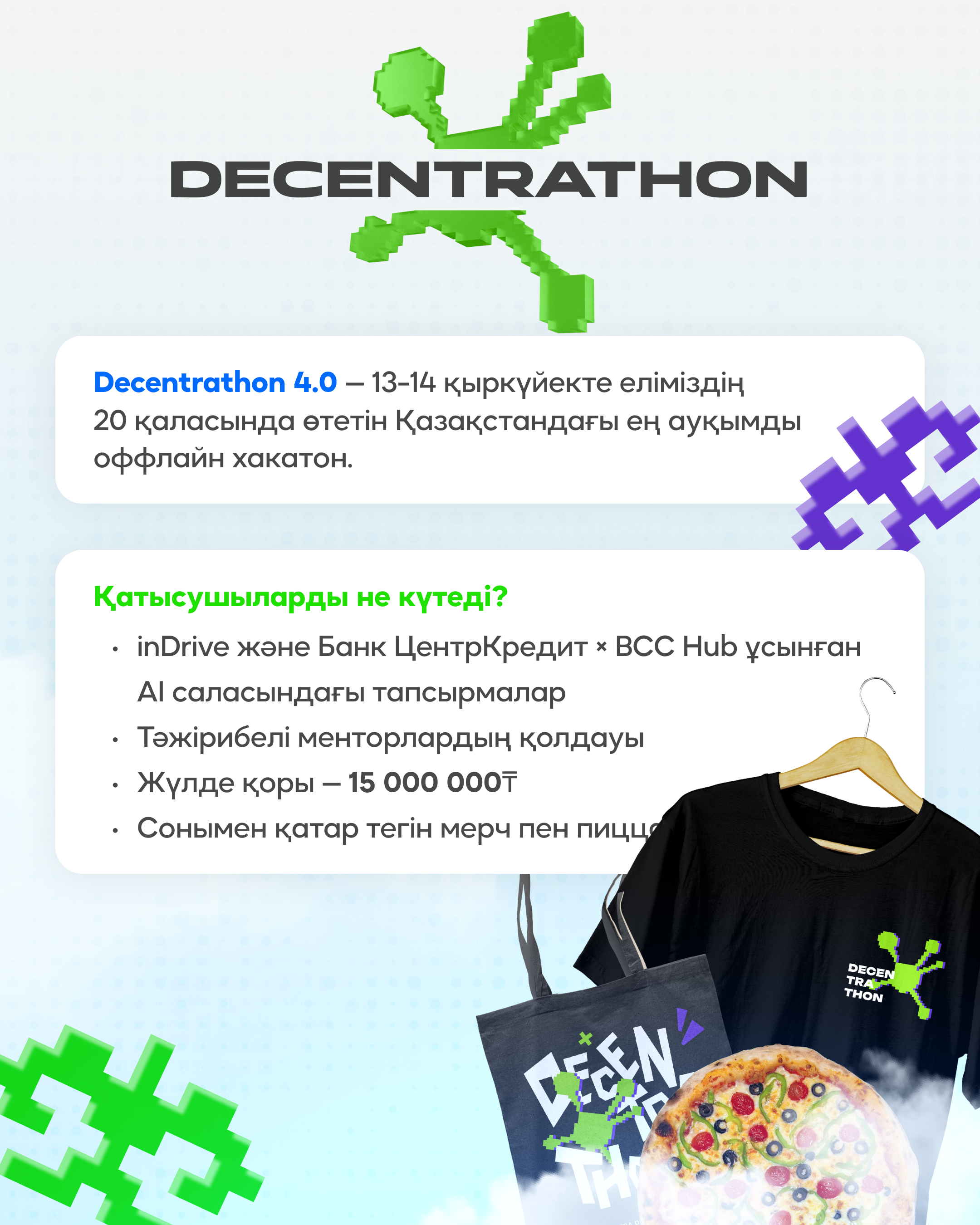 @decentrathon парақшасына өтіп барлық ақпаратты біліп ал