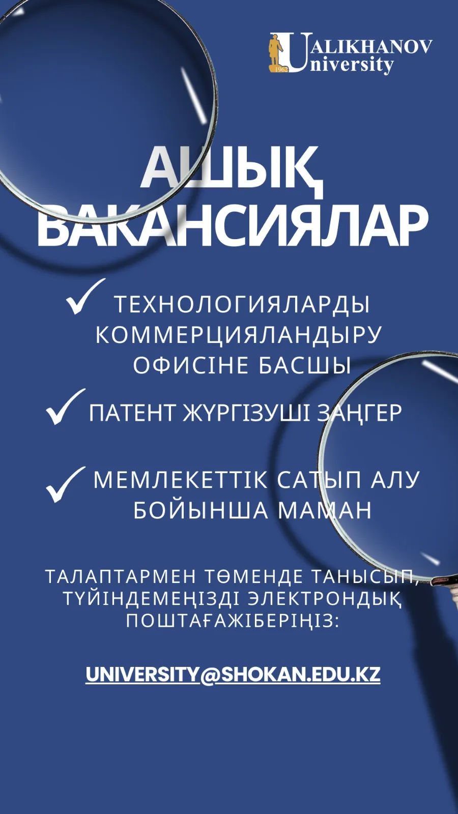 Резюмені university@shokan.edu.kz поштасына жолдау қажет.