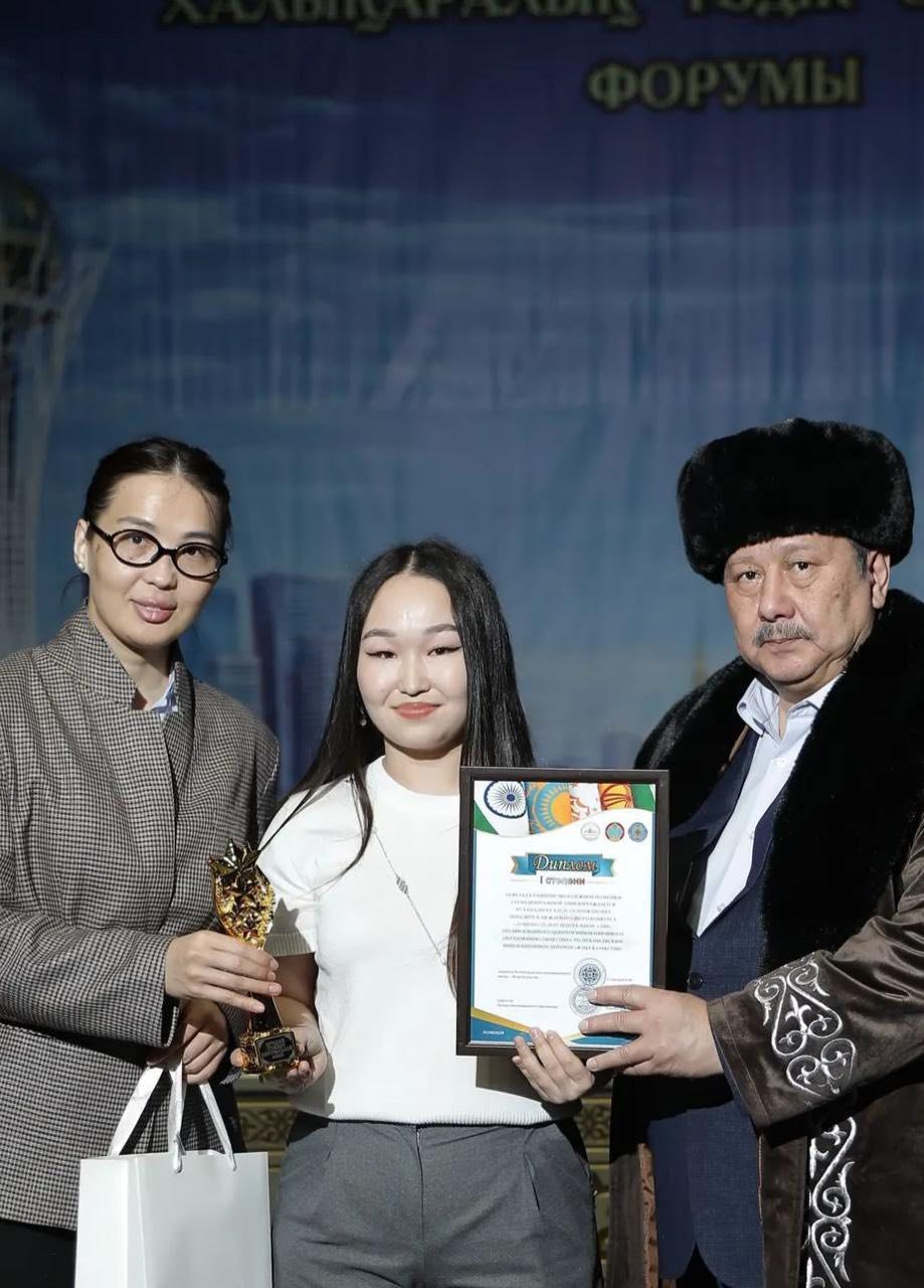 Байқау қорытындысы бойынша ол Орталық Азия елдерінің жастар саясатын дамытуға қосқан үлесі үшін I дәрежелі дипломмен марапатталып, сондай-ақ медаль және құрмет грамотасына ие болды.