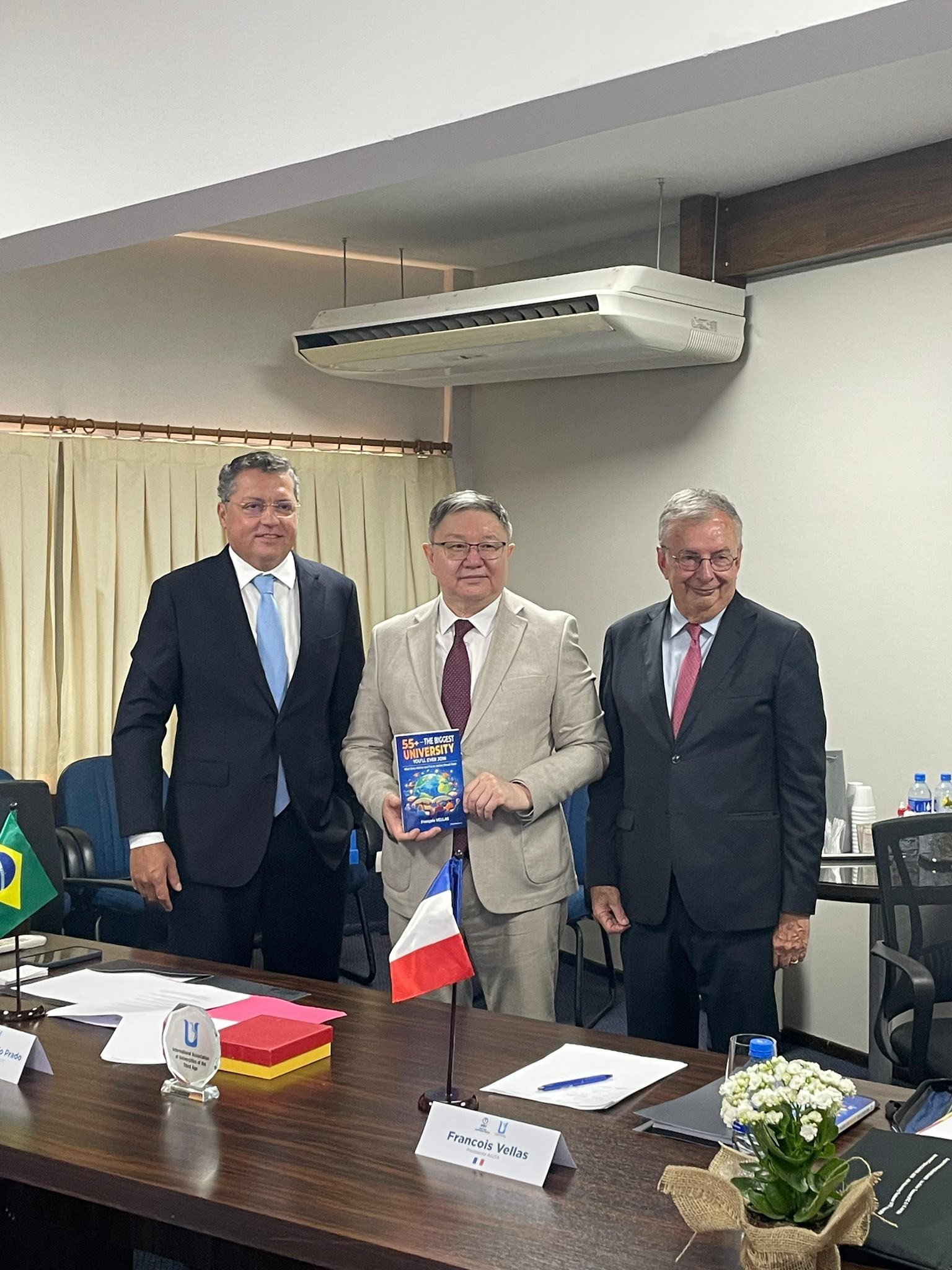 Ualikhanov University ректоры Марат Сырлыбаев пен халқаралық қатынастар бөлімінің жетекшісі Рахымжанов Еркеш наурыз айының 17 - 20 күндері аралығында Бразилия Федеративті Республикасына ресми сапармен барып, маңызды халықаралық іс-шараларға қатысып, ресми құжатқа қол қойды.