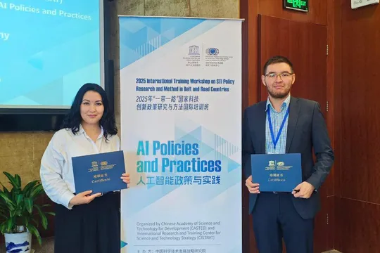 2025 жылғы 30 шілде мен 15 тамыз аралығында қауымдастырылған профессор Сабитова Д.С. және цифрландыру бөлімінің аға бағдарламашысы Альмусаев О.С. Қытай ғылым және технология академиясы (CASTED) жанындағы Ғылым мен технология стратегиясы жөніндегі халықаралық зерттеу және даярлау орталығы (CISTRAT) ұйымдастырған CISTRAT International Training Workshop “AI Policies and Practices” халықаралық оқу семинарына қатысты.Семинар ЮНЕСКО қолдауымен өткізіліп, ғылым, технология және инновациялар (STI) саласындағы ұлттық стратегияларды дамытуға, әсіресе жасанды интеллекттің (AI) қарқынды дамуы аясында бағытталды. Шара 15 елдің өкілдерін жинап, AI реттеу, STI-саясат, халықаралық ынтымақтастық және тұрақты даму бойынша тәжірибе алмасуға алаң болды.