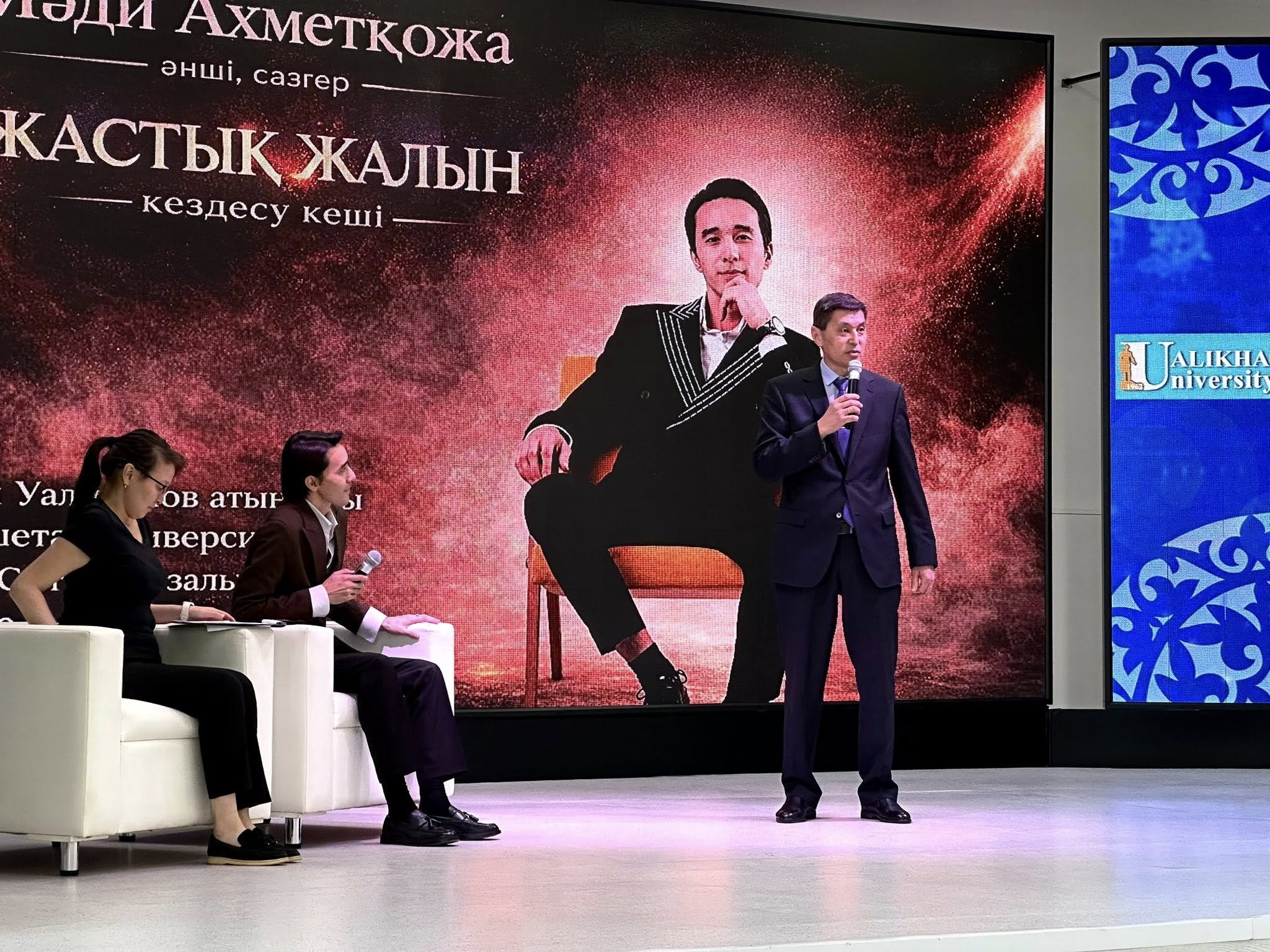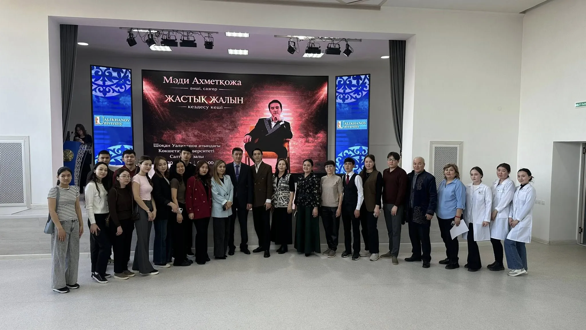 Бүгін университетімізде «Жастық жалын» атты кездесу кеші өтті. Арнайы қонағымыз — әнші әрі сазгер Ахметқожа Мәди болды.Кеш барысында ол өзінің әндерін орындап, студенттермен еркін форматта диалог құрды. Сұрақ-жауап бөлімі қызықты әрі мазмұнды өтті. Сонымен қатар, түрлі интерактив ұйымдастырылып, студенттер белсенді қатысты.