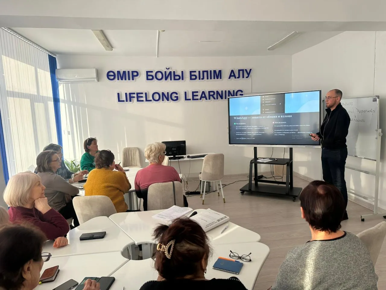 Іс-шара барысында негізгі алаяқтық түрлерді, жеке ақпарат пен қаржылық жинақтарды қорғау тәсілдері талқыланды. Алаяқтардың құрбаны болған жағдайда әрекет ету алгоритмі үйретілді. Тыңдаушылар банк қосымшалары мен WhatsApp-пен қауіпсіз жұмыс істеу жөнінде жазбаша нұсқаулықтарды алды.