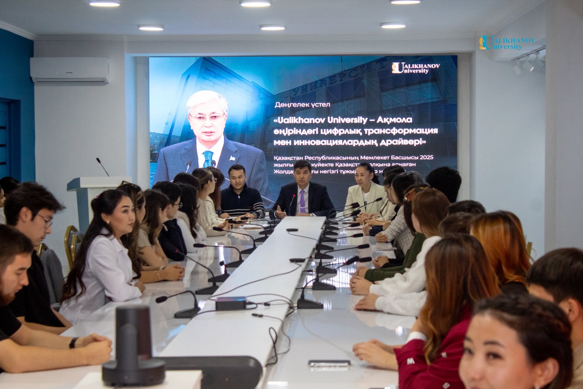 «Ualikhanov University - Ақмола облысындағы цифрлық трансформация мен инновациялардың драйвері» тақырыбындағы дөңгелек үстел Қазақстан Республикасы Президентінің 2025 жылғы 8 қыркүйектегі Қазақстан халқына Жолдауында айтылған негізгі тезистерге арналды.