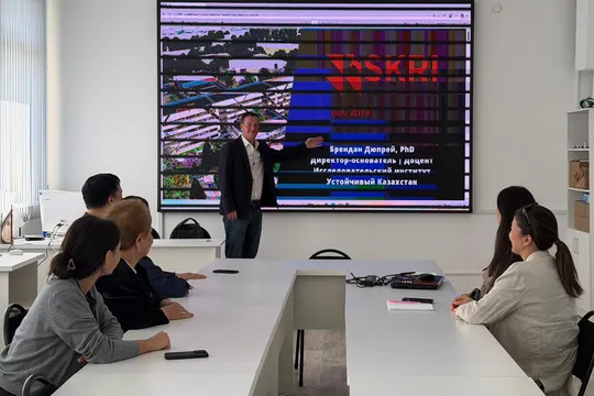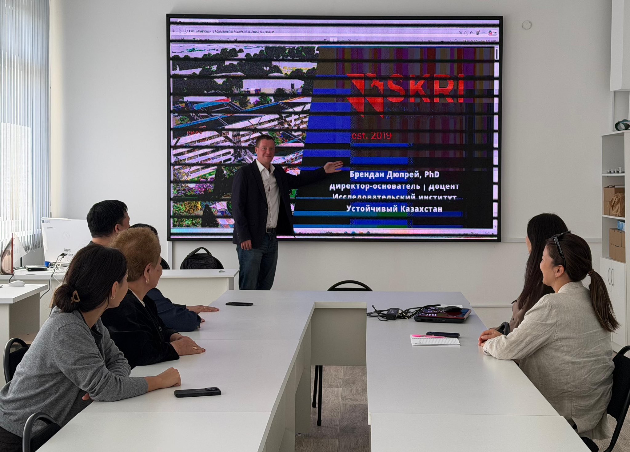 Ualikhanov University-не философия докторы (PhD), қауымдастырылған профессор, Narxoz University Тұрақтылық және даму институтының директоры Brendan Duprey келді