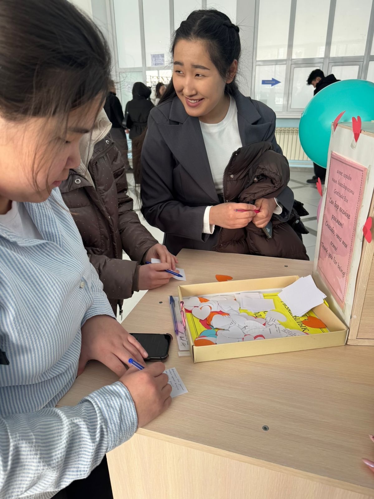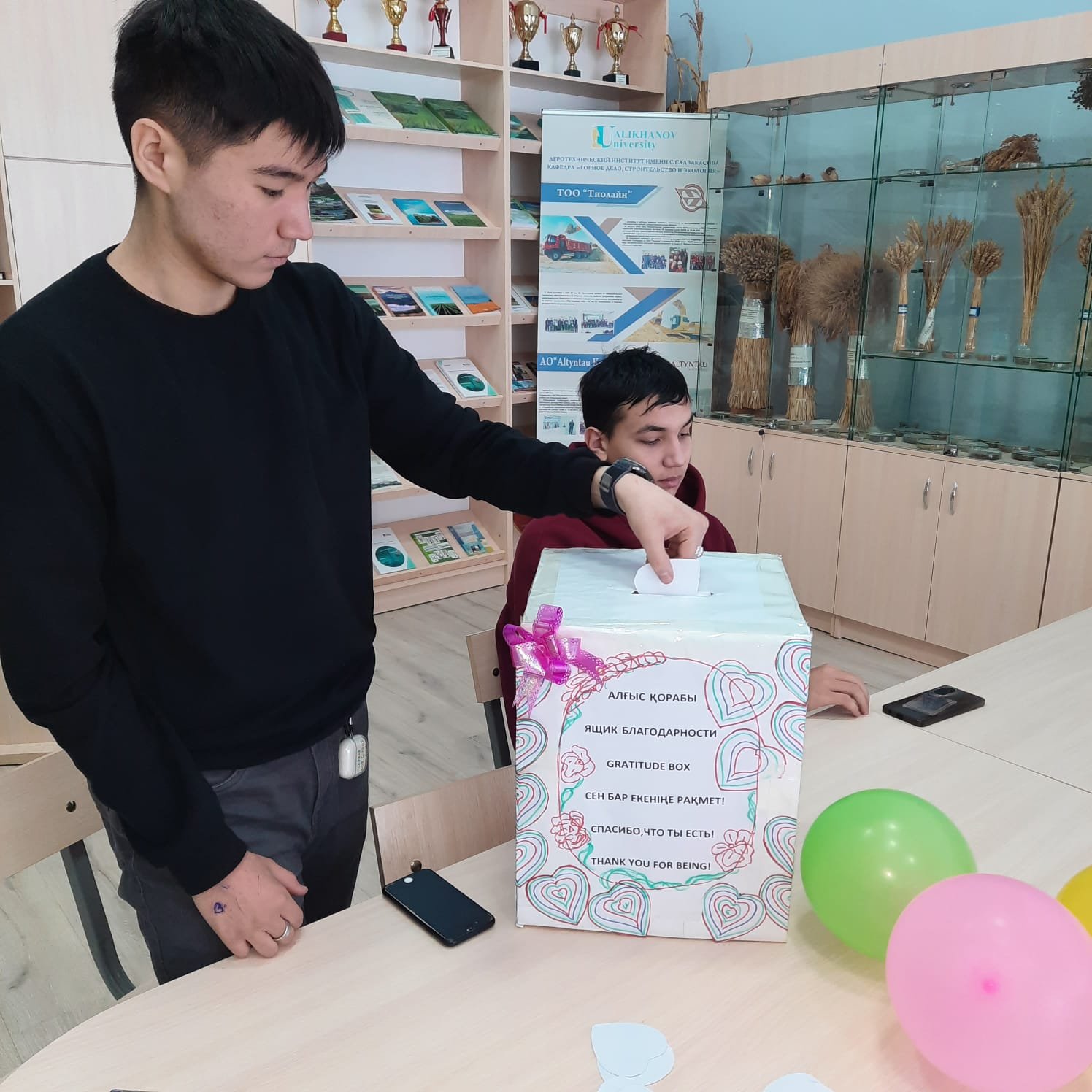2 - 4 наурыз аралығында университетте Алғыс айту күніне арналған іс-шара өтті. Іс-шараның бастамашысы әрі ұйымдастырушысы - университет психологы Манапова Алтын Оразовна. Шараға «Soft Skills Lab» психологиялық клубының «Психология» білім беру бағдарламасының ПР-241 тобының студенттері белсенді қатысты. Сонымен қатар, шетелдік студенттер де атсалысты. Іс-шараның мақсаты – студенттік ортада алғыс айту мәдениетін қалыптастыру, тұлғааралық қарым-қатынасты нығайту, эмпатия мен позитивті ойлауды дамыту. «Сен бар болғаның үшін рақмет!» атты «Алғыс жәшігі» акциясы аясында студенттер арнайы карточкаларға жылы лебіздерін жазды. Олар достары мен топтастарына алғыс білдіріп қана қоймай, университет оқытушыларына көрсеткен қолдауы, берген білімі мен тәлімгерлігі үшін ризашылықтарын жеткізді. Сонымен қатар, студенттер аналары мен әкелеріне, ата-аналары мен туыстарына сүйіспеншілігін білдіріп, қамқорлығы мен сенімі үшін шынайы алғыстарын жазды.Шара барысында қатысушылар өмірлеріндегі маңызды адамдар туралы айтып, өздері шын жүректен алғыс білдіретін жандар жайында бөлісті. Барлық хаттар өз иелеріне жеткізілді: студент-практиканттар алғыс хаттардың жолдануын ұйымдастырды.Акция жылы, сенімді әрі эмоционалдық қолдау атмосферасында өтті. Студенттердің айтуынша, алғыс айту тәжірибесі мазасыздықты азайтып, ішкі ресурсты нығайтуға, эмоционалдық жақындықты арттыруға және өмірге деген оң көзқарасты қалыптастыруға ықпал етеді.