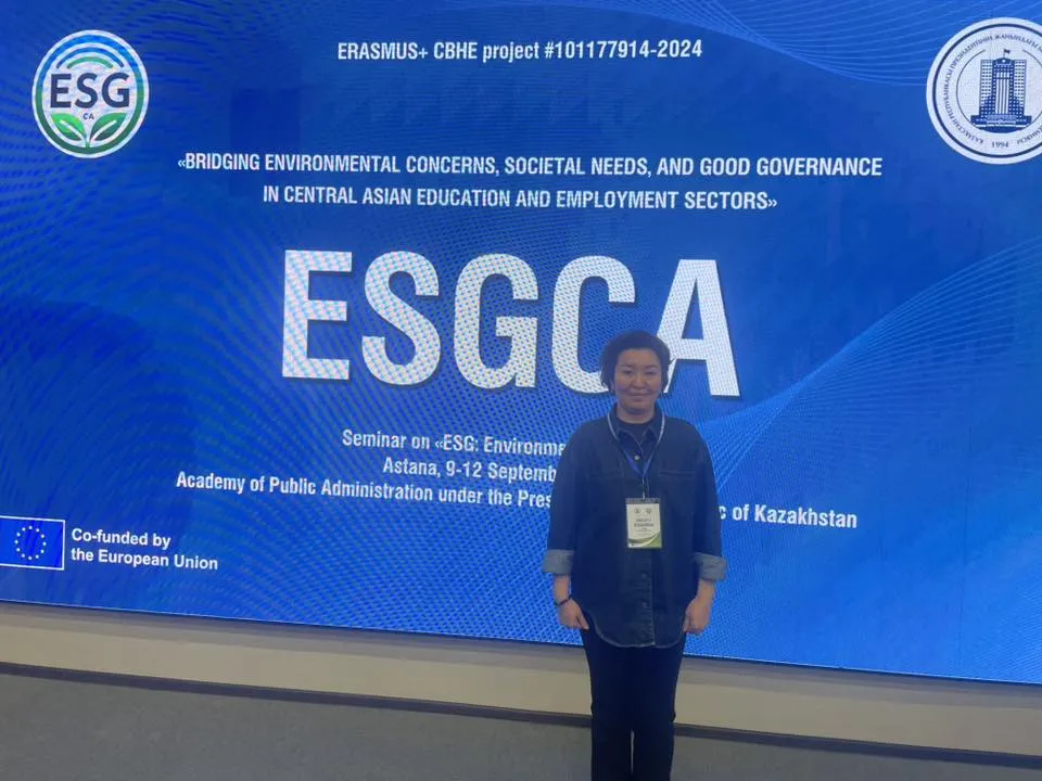 С 9 по 12 сентября 2025 года в г. Астане на базе Академии государственного управления при Президенте Республики Казахстан прошел международный семинар «ESG: Environmental Aspect» в рамках проекта Erasmus+ CBHE ESGCA, посвящённый экологическим аспектам устойчивого развития и внедрению принципов ESG в образовательные программы и бизнес-практики. В семинаре участвуют представители университетов и партнёры из 8 стран: Казахстана, Италии, Кыргызстана, Узбекистана, Таджикистана, Туркменистана, Румынии и Словакии.