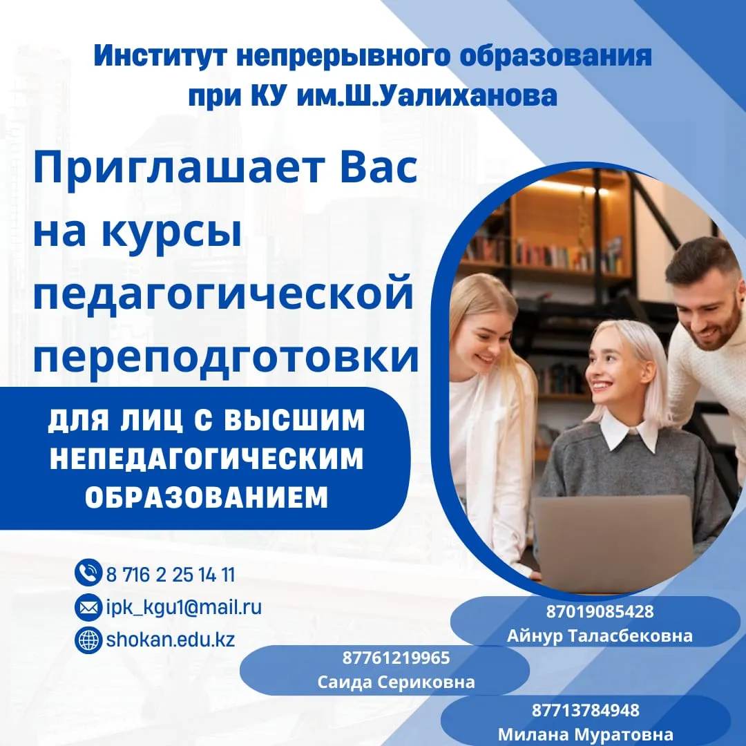 One of the main activities of the Institute of Continuing Education at the NAO "Kokshetau University named after Shokan Ualikhanov" is conducting pedagogical retraining courses.