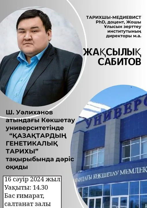16 Сәуірде Ualikhanov University бас ғимаратында, акт залында студенттер, магистранттар мен докторанттар үшін дәріс өтеді. Дәрісті белгілі ғалым Жақсылық Сәбитов жүргізеді.