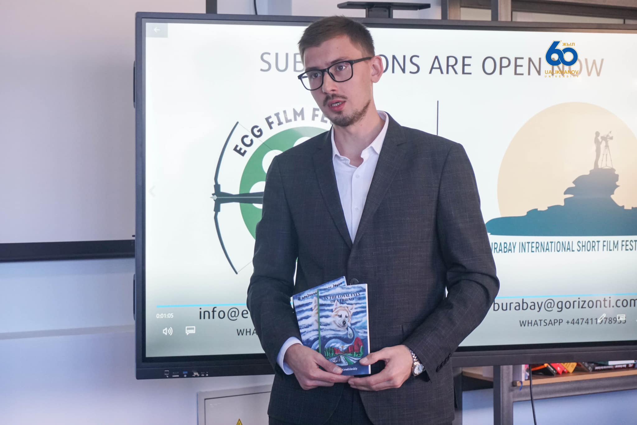 04.10.2022 года в 14:00 в главном корпусе университета им.Ш.Уалиханова электронно-читальном зале состоялась встреча с молодым писателем из Узбекистана Андреем Гродзинским с презентацией его книги “In the loyal eyes of a friend” , которая была издана на грант победителя конкурса “Open Eurasia”