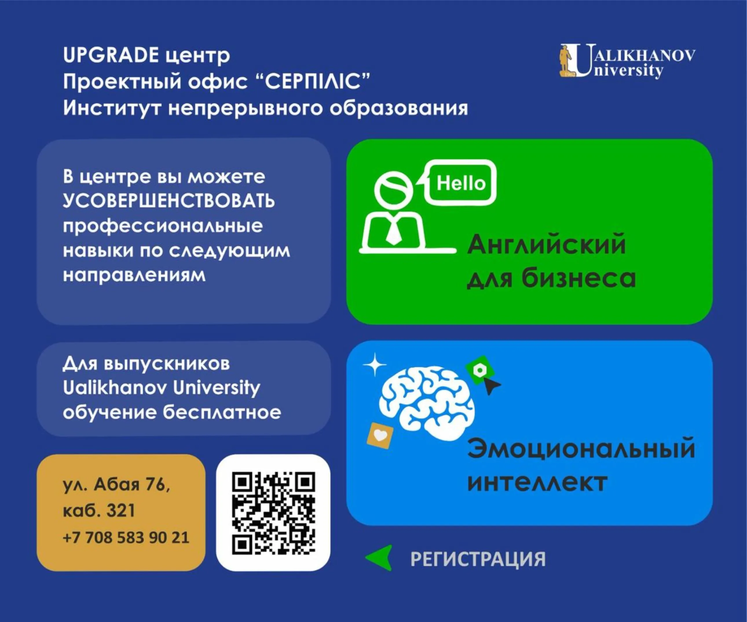 Повышайте квалификацию в «Upgrade» центре при Ualikhanov university! Приглашаем вас на курсы, которые помогут овладеть востребованными навыками под руководством опытных преподавателей.