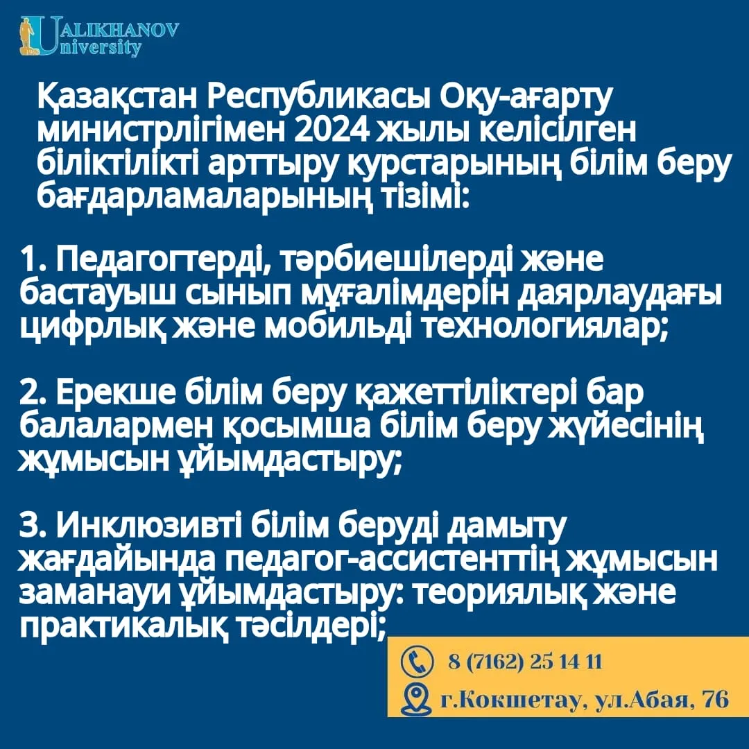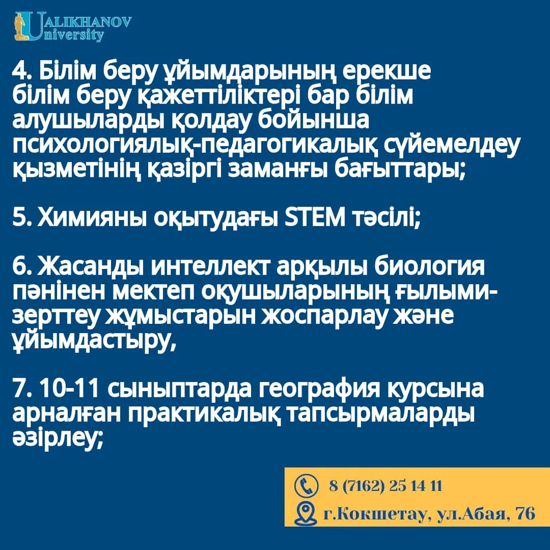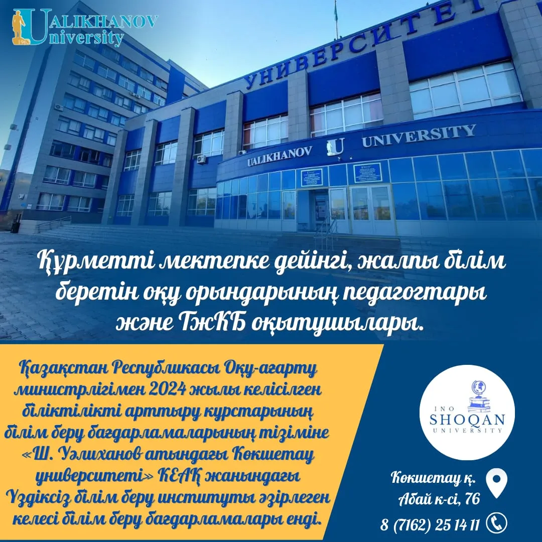"Ш. Уәлиханов атындағы Көкшетау университеті" КеАҚ, Үздіксіз білім беру институты: