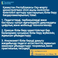 - біліктілікті арттыру, педагогикалық қайта даярлау, ресми және бейресми білім берудің білім беру бағдарламаларын іске асыруды ұйымдастыру;