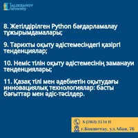 - тиісті салалардағы жаңа тәжірибе мен жетістіктер негізінде білім беру бағдарламаларын ілгерілету;
