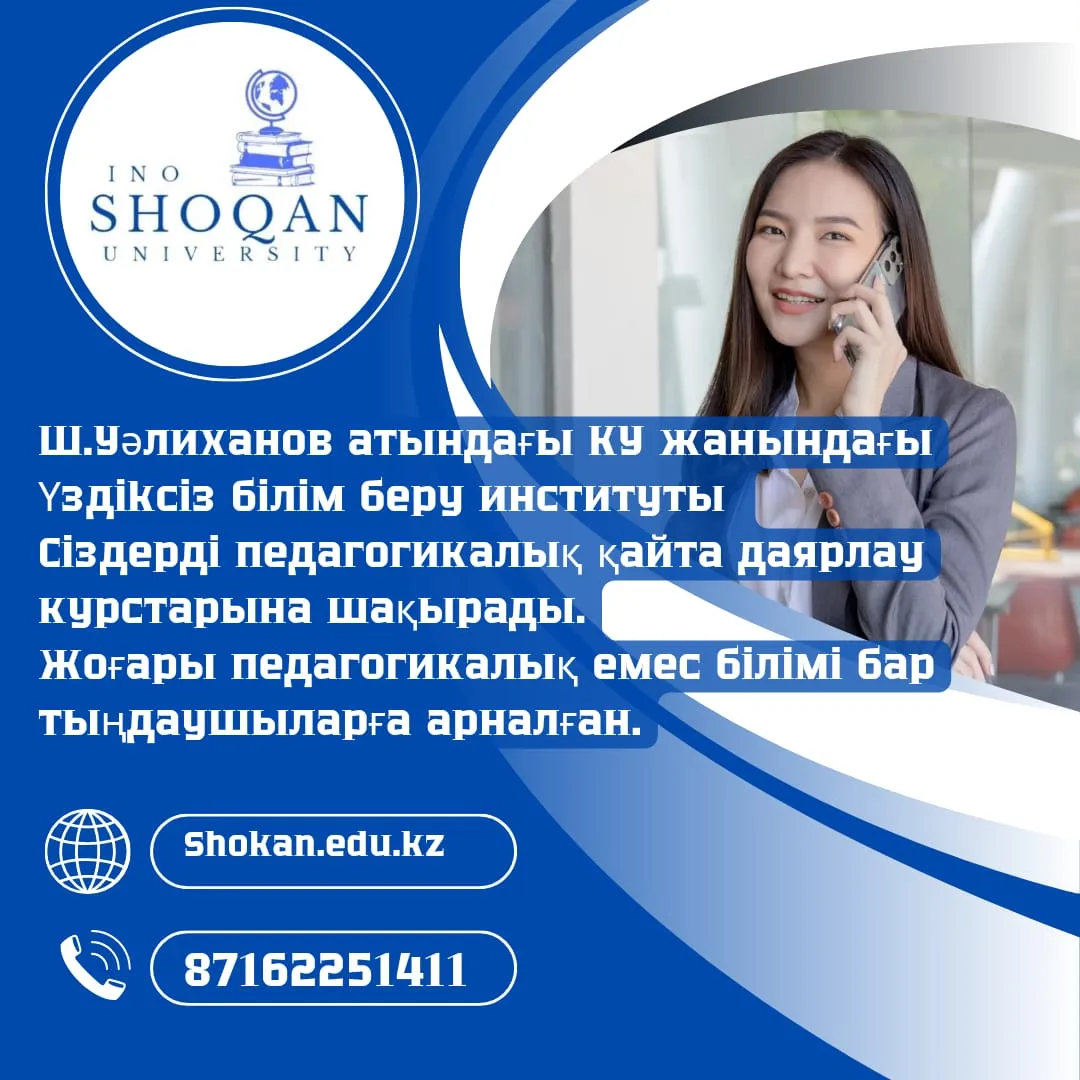 "Шоқан Уәлиханов атындағы Көкшетау университеті" КеАҚ Үздіксіз білім беру институтының маңызды қызметінің бірі - біліктілікті арттыру курстарын ұйымдастыру.