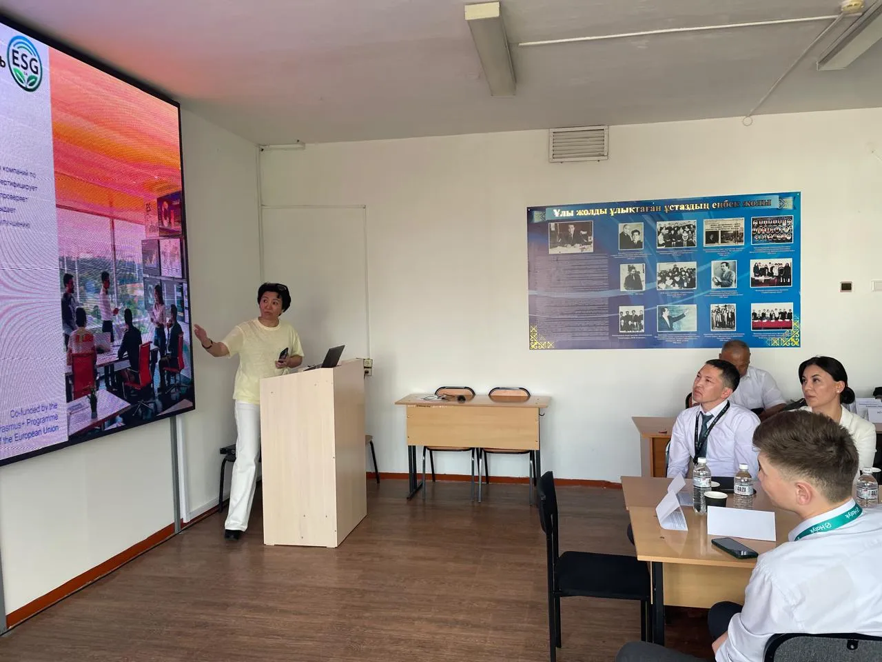 2025 жылы 12 маусымда "Bridging Environmental Concerns, Societal Needs, and Good Governance in Central Asian Education and Employment Sectors "/ ESGCA тақырыбында жобасы аясында банктердің қызметкерлері мен бизнес-сектор өкілдеріне арналған ESG мәселелері жөнінде семинар өтті.