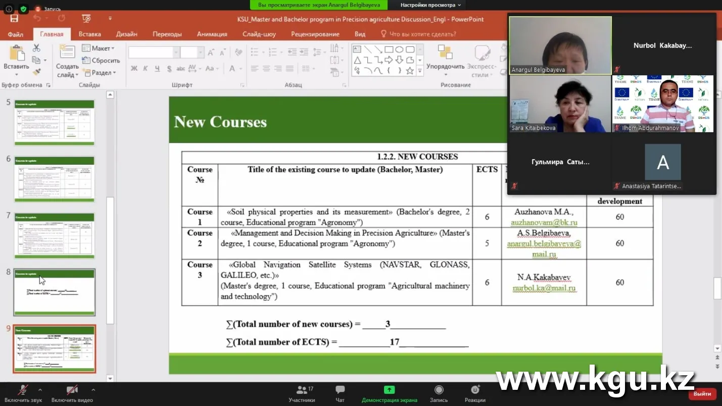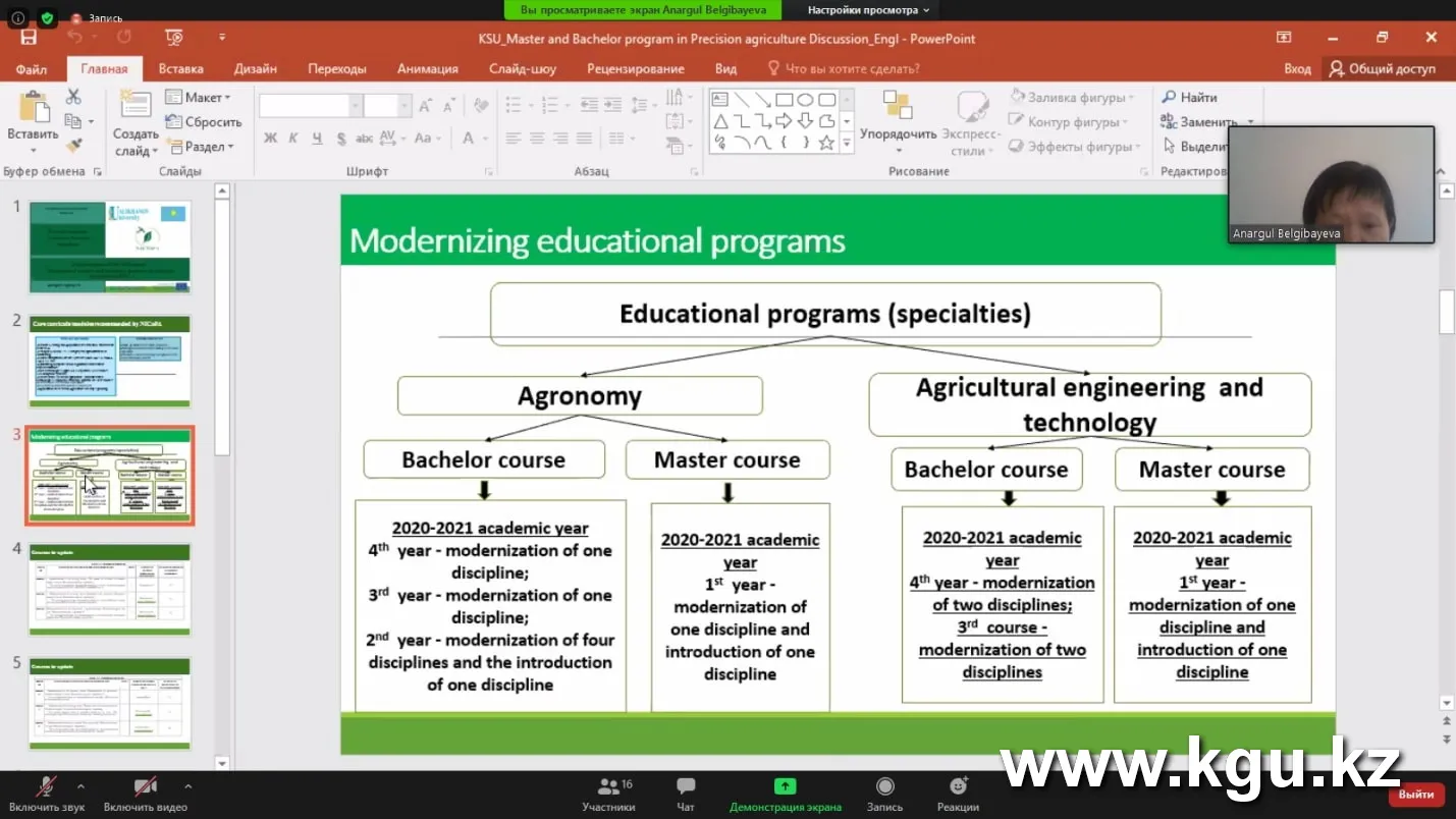 - "Болон процесінің талаптарына және жаңа әзірлемелерге сәйкес дәл егіншілік саласындағы жаңартылған ағымдағы екі деңгейлі оқу бағдарламалары" инновациялық оқу орындарын қоса алғанда, жаңа негізгі оқу жоспарлары мен аударма модульдерінің жиынтығы
