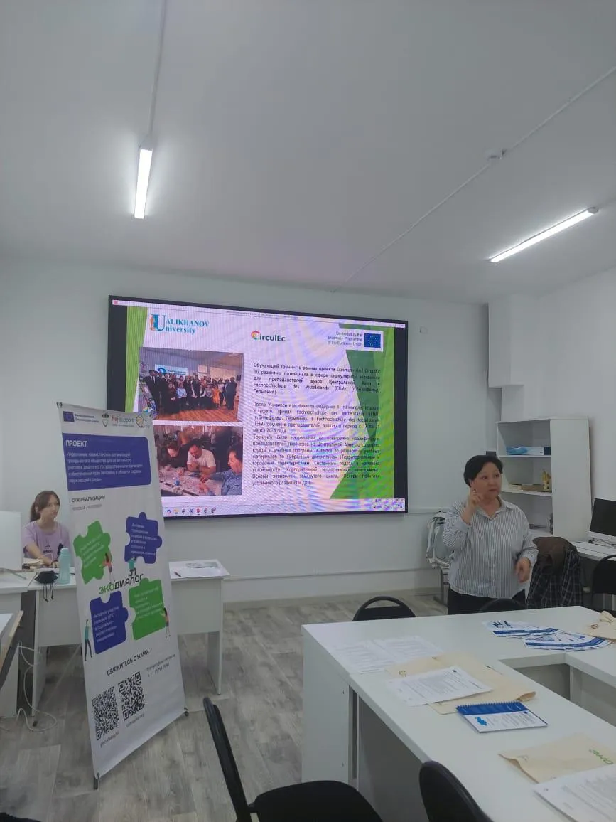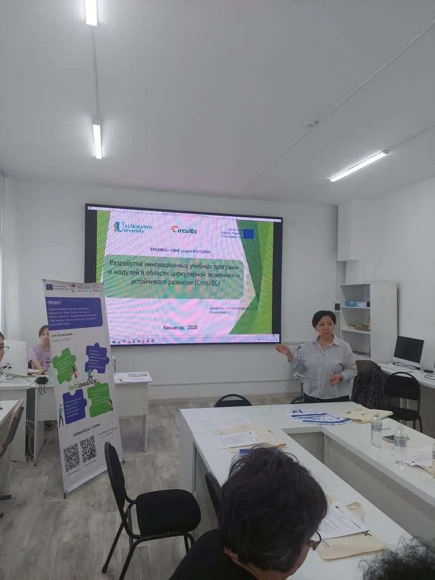 2025 жылы 16 мамырда Ш. Уәлиханов атындағы Көкшетау университетінің Агротехникалық институты базасында “Айналмалы экономика және тұрақты даму саласында инновациялық оқу бағдарламалары мен модульдерін әзірлеу” CirculEC жобасының нәтижелерін тарату мақсатында ақпараттық күн өтті. Іс-шара аясында Курманбаева А.С. баяндама жасады. Шараға экологиялық және әлеуметтік үкіметтік емес ұйымдардың өкілдері, университет оқытушылары мен табиғатты қорғау мекемелерінің қызметкерлері қатысты.