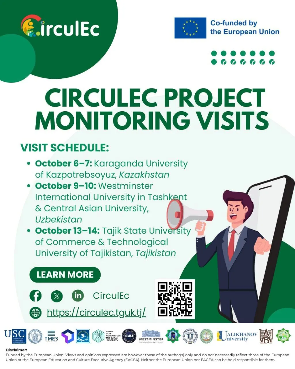 Біз Еуропалық Одақтың Erasmus+ бағдарламасы қаржыландыратын CirculEC жобасы – Айналмалы экономика және тұрақты даму бойынша инновациялық оқу жоспарлары мен модульдерін әзірлеу аясындағы алдағы мониторингтік кездесу туралы хабарлауға қуаныштымыз.