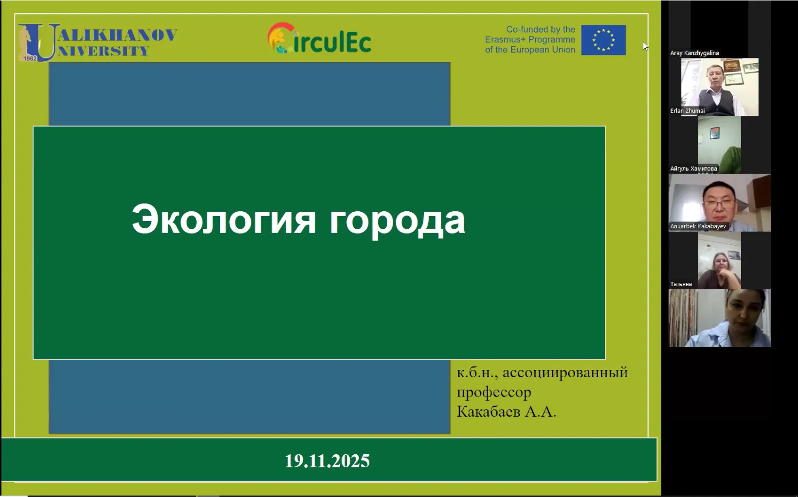 Ш. Уәлиханов атындағы Көкшетау университетінің базасында EU ERASMUS+ /KA2/ CBHE 101129169 «Айналмалы экономика және тұрақты даму саласында инновациялық оқу бағдарламалары мен модульдерін әзірлеу (CirculEC)» халықаралық жобасы аясында 2025 жылдың 17 қарашасынан 5 желтоқсанына дейін «Қала экологиясы» тақырыбында 72 сағаттық біліктілікті арттыру курстары өткізілуде.
