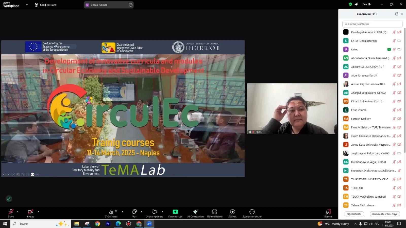 2025 жылы 11-14 наурыз аралығында Неапольдегі Федерико II университетінде (Università degli Studi di Napoli Federico II) (UNINA) Орталық Азия (Қазақстан, Тәжікстан, Өзбекстан және Түрікменстан) жоғары оқу орындарының оқытушыларына арналған айналмалы экономика саласындағы әлеуетті дамыту бойынша оқыту тренингі өтуде.