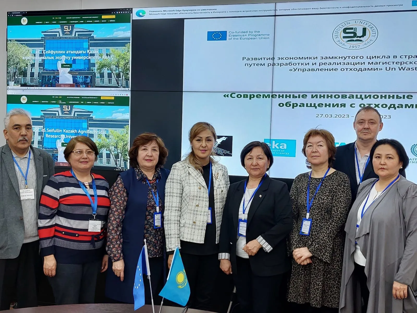 2023 жылдың 27-31 наурыз аралығында университет оқытушылары мен магистранттары С. Сейфуллин атындағы Қазақ агротехникалық зерттеу университетінде "Қалдықтармен жұмыс істеудің заманауи инновациялық технологиялары" тақырыбындағы семинарға қатысты.Апта бойы С. Сейфуллин Қазақ агротехникалық зерттеу университетінің оқытушылары барлық бағыттар бойынша қалдықтарды басқарудың жаңа тәсілдерін қолдану туралы дәріс оқыды.Семинар барысында магистранттар мен жұмыс тобының мүшелеріне университеттің зерттеу орталығының жұмысымен, сондай-ақ қалдықтарды қайта өңдеу мен кәдеге жаратудың инновациялық әдістерін енгізу туралы ақпаратпен танысуға мүмкіндік берілді.