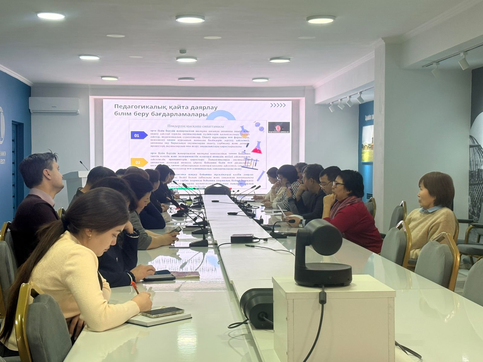 2025 жылдың 10 желтоқсанында Үздіксіз білім беру институты педагогикалық қайта даярлау курстарының білім беру бағдарламаларын талқылау үшін Ақмола облысының білім басқармасы мен Көкшетау қаласының білім бөлімі өкілдерімен жұмыс кездесуін өткізді.