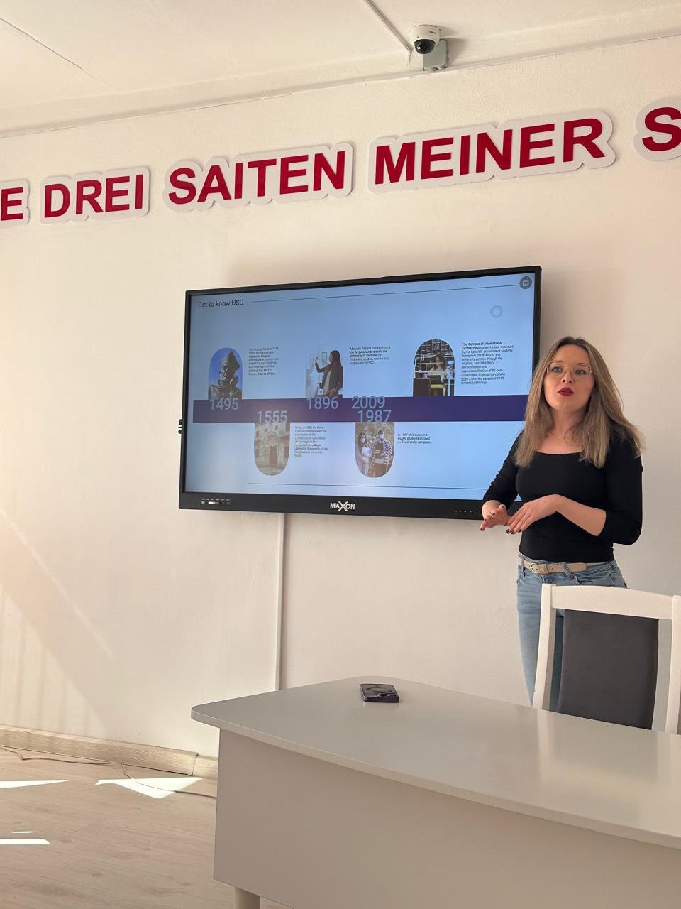 Кездесу ашық диалог форматында өтті. Қонақ қатысушыларды Еуропадағы ең көне университеттердің бірі – Сантьяго-де-Компостела университетінің көп қырлы қызметімен таныстырды, сондай-ақ Испаниядағы стартаптарды іске асыру және ілгерілету тәжірибесімен бөлісті, гранттық қолдаудың өзекті нысандары және жаңадан бастаған кәсіпкерлер үшін халықаралық мүмкіндіктер туралы айтты.
