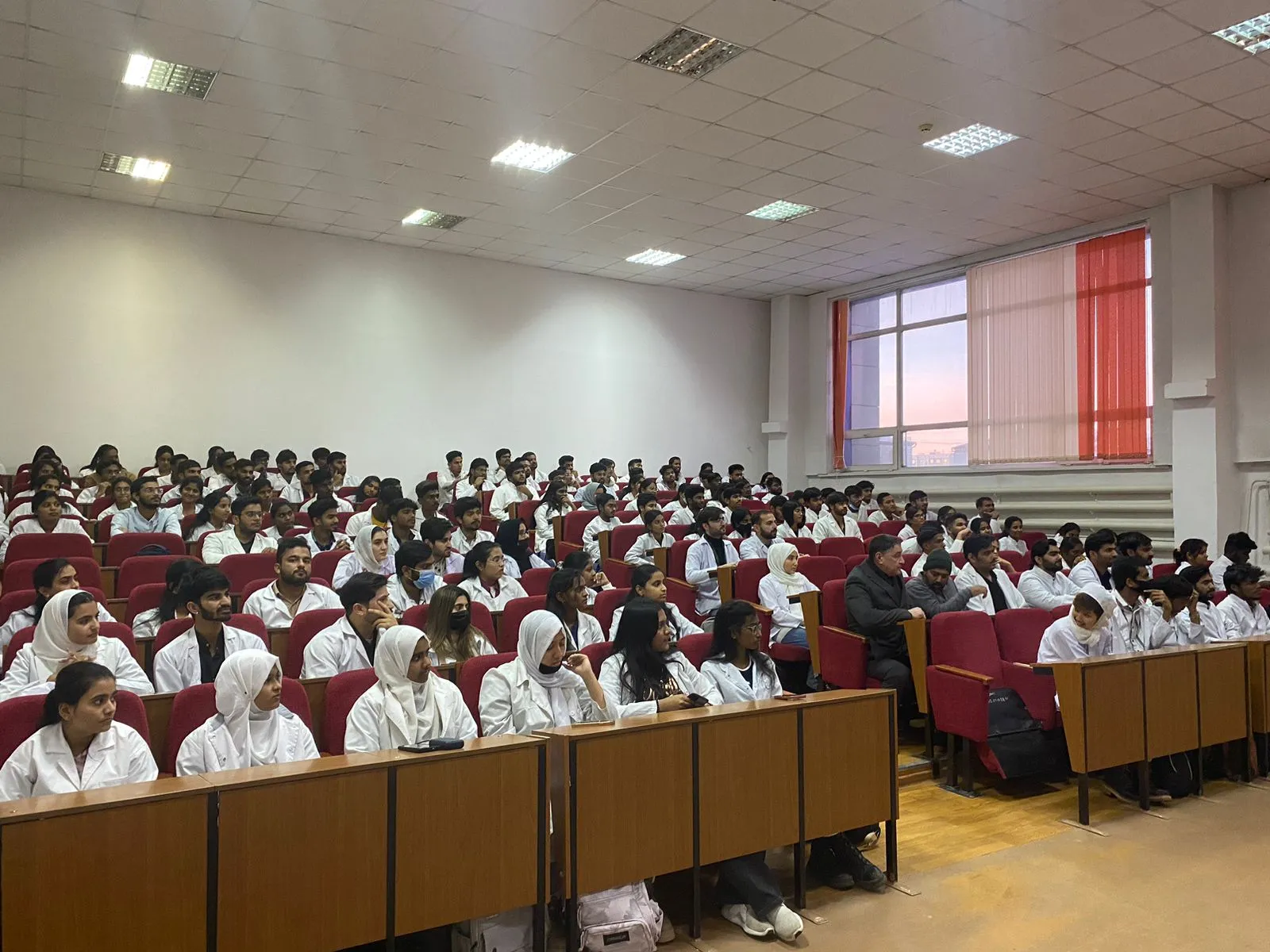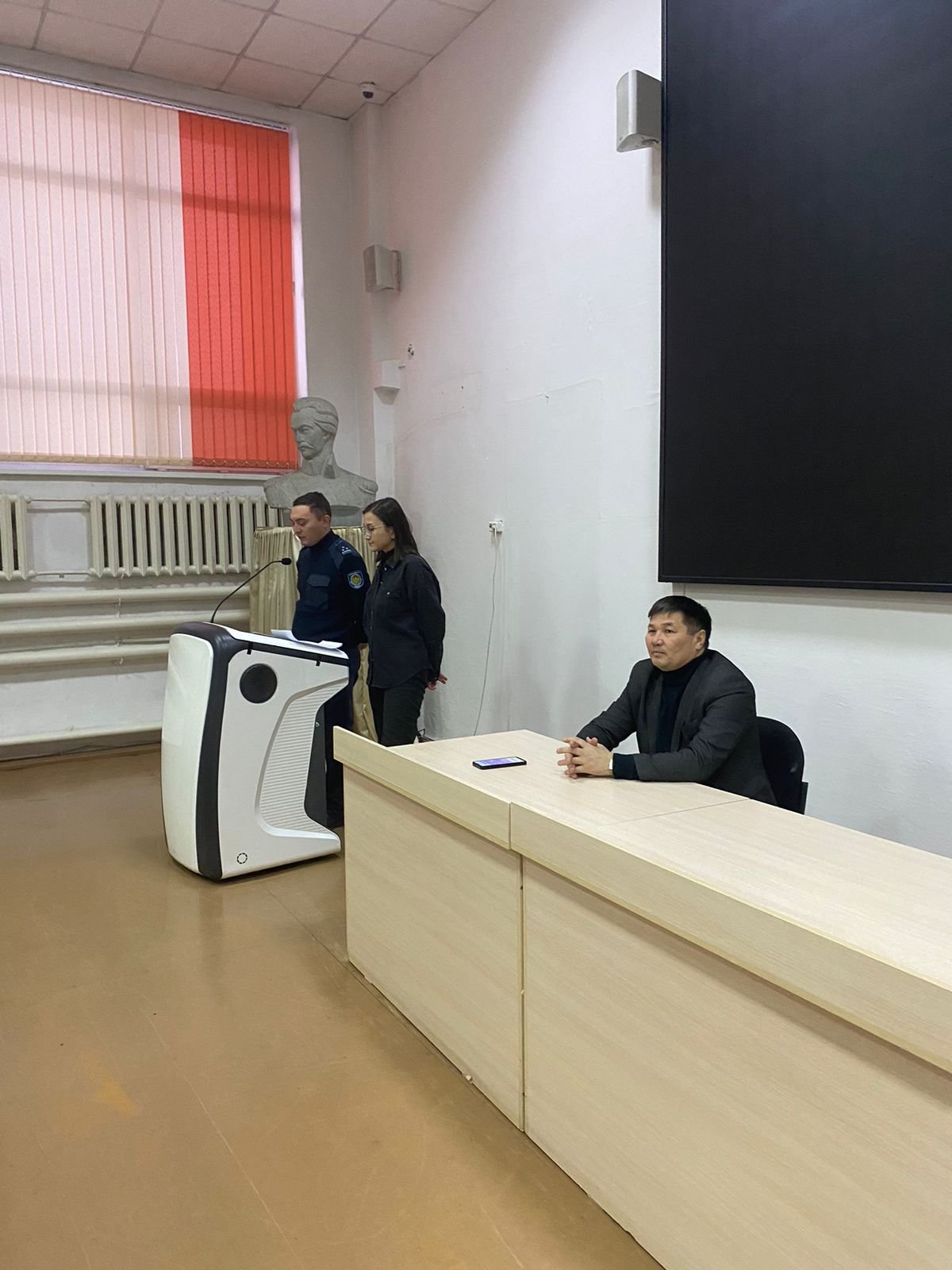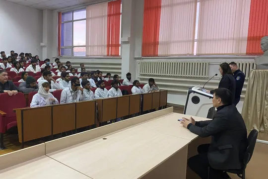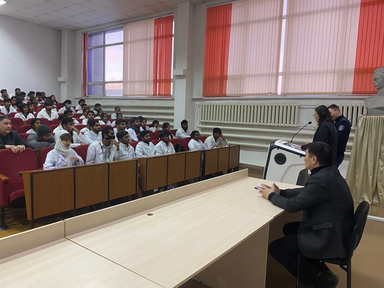 18.11.2024 ж. Жоғары медицина мектебінің шетелдік студенттерімен ювеналды полиция бөлімшесінің учаскелік инспекторы полиция аға лейтенанты Ж. Т. Даниевпен студенттердің қауіпсіздігі бойынша профилактикалық әңгіме өткізілді. Қоғамдық орындардағы мінез-құлық, құқық қорғау органдарымен өзара іс-қимыл және Қазақстан Республикасының заңнамасын сақтау мәселелеріне ерекше назар аударылды.