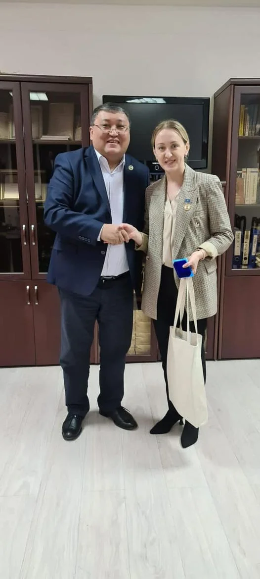 2 ноября 2022 года первый проректор университета Байтук Г.С. в честь юбилейных мероприятий нашего университета вручил Ходаковской Наталье Васильевне юбилейную медаль. Ходаковская Н.В. является директором Акмолинского филиала «Евразия Групп», выпускница университета им.Ш.Уалиханова.