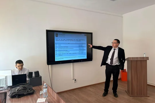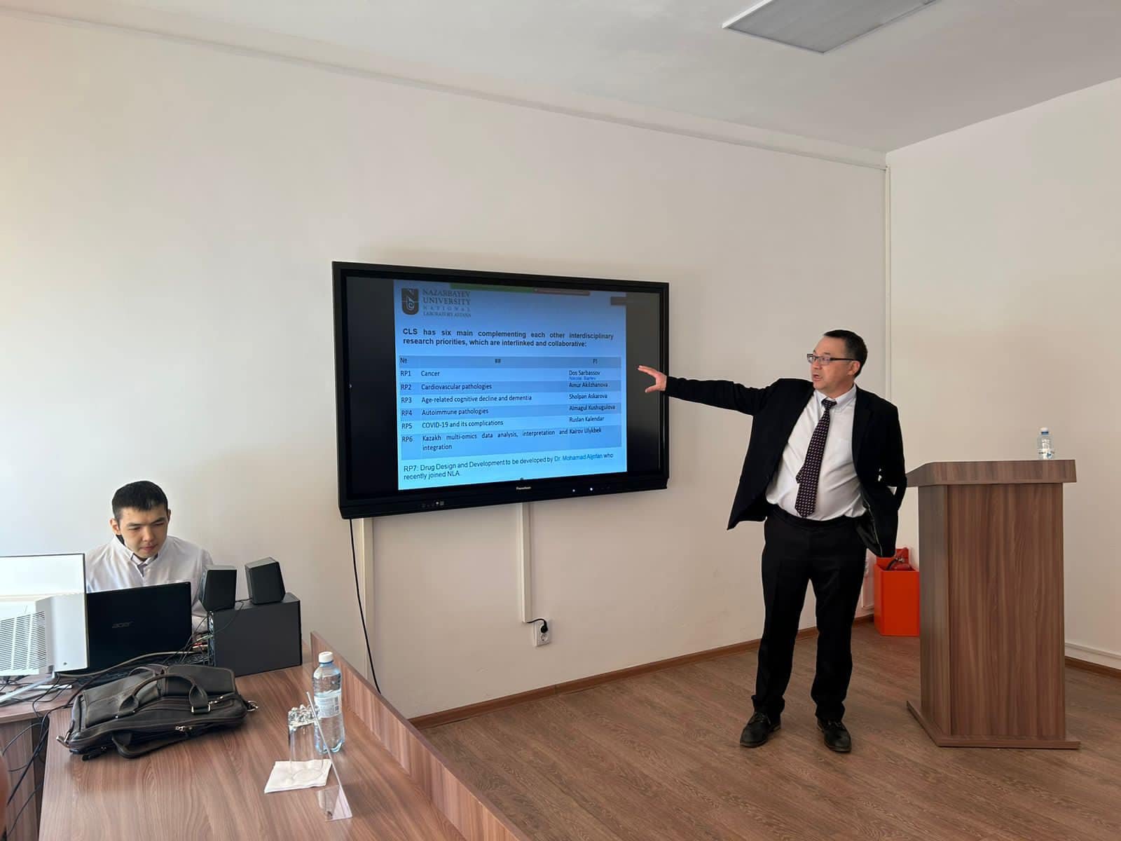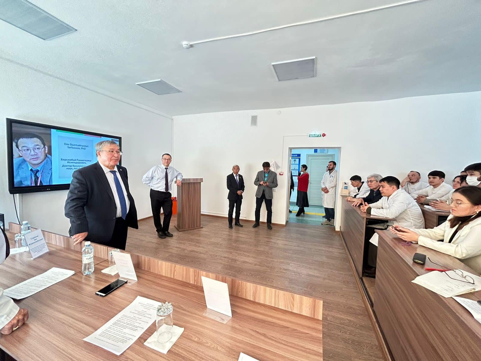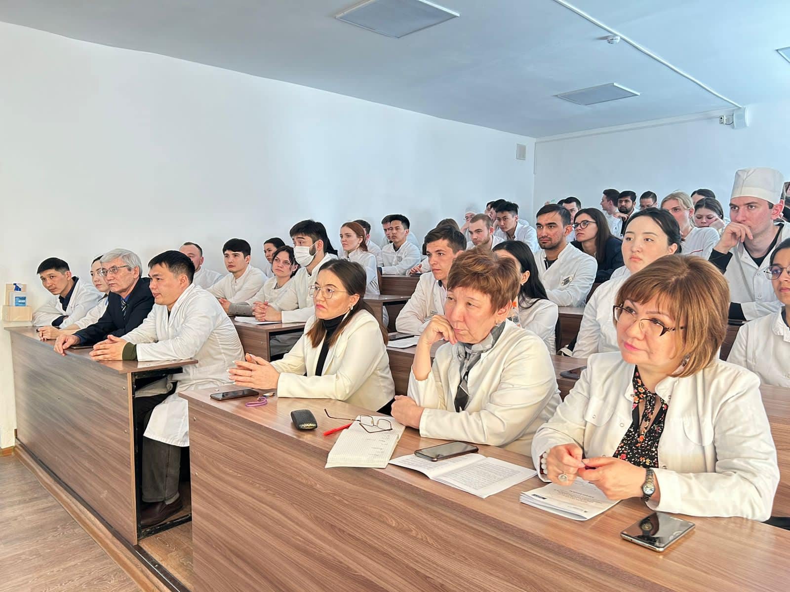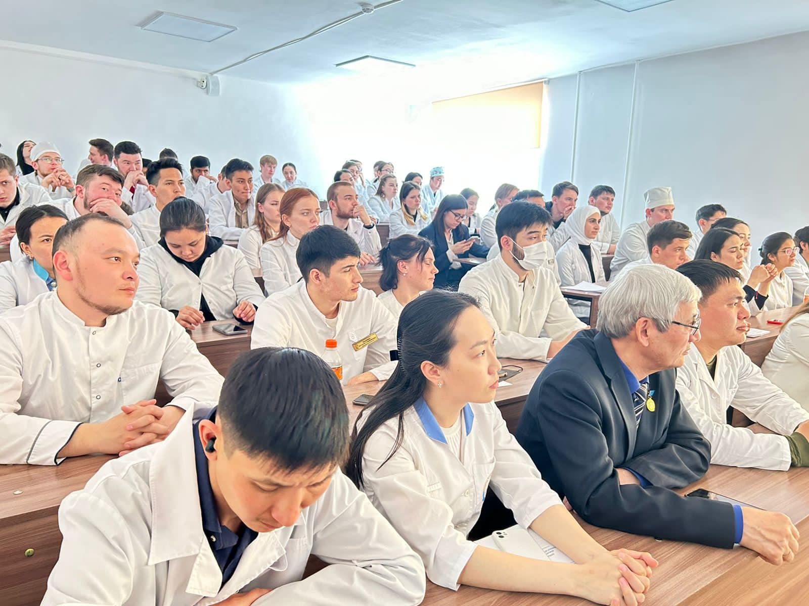 21 апреля высшая школа медицины успешно провела работу секции «Медицина» в рамках международной научно-практической конференции ШОҚАН ОҚУЛАРЫ-27 «РОЛЬ УНИВЕРСИТЕТСКОЙ НАУКИ В РАЗВИТИИ РЕГИОНА». Данная серия конференций является традиционной для вуза, является 27-ой по счету, и берет свое начало с 1985 г. в этом году секция медицины пополнилась ощутимо значимыми докладами, в частности в сфере молекулярной биологии и онкологии. Уважаемые гости с мировым признанием научного сообщества выступили с докладами, продемонстрировавшими научный прорыв на международной арене. Так, Берсимбай Рахметкажы Искендирович, Академик НАН РК, доктор биологических наук, профессор, директор НИИ клеточной биологии и биотехнологии, почетный заведующий кафедрой общей биологии и геномики ЕНУ им. Л.Н. Гумилева, (г.Астана), Казахстан рассказал о фундаментальных концепциях молекулярной биологии широкой публике. Тогда как Dos Sarbassov, Профессор биологии | Школа гуманитарных и социальных наук Генеральный директор Национальной лаборатории Астана, Назарбаев Университет выступил с более специлизированной темой «Targeting of KRAS mutant cancer cells by a potent oxidative drug combination: a rationale for cancer therapeutics», освещая прогресс деятельности в лечении злокачественных новообразований. Всего на секцию принято 11 статей, 5 из них подготовили презентации и доклады. После выступления и приветсвия председателя секции – заведующего кафедрой клинических дисциплин к.м.н., Турлубекова Кайрат Караевича – были заслушаны работы согласно программе конференции (секции). В заключении конференции всем пожелали дальнейших успехов в науке.