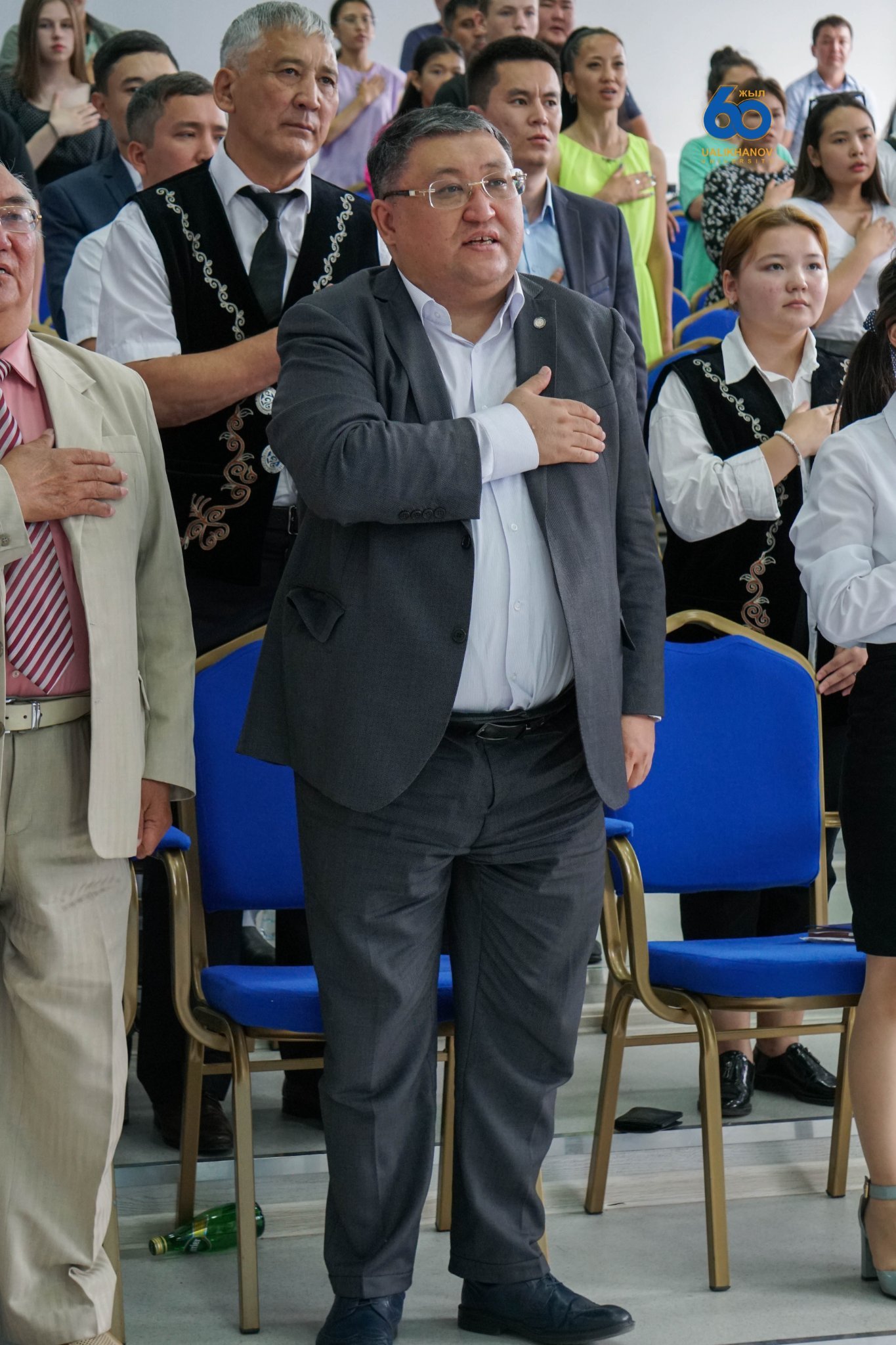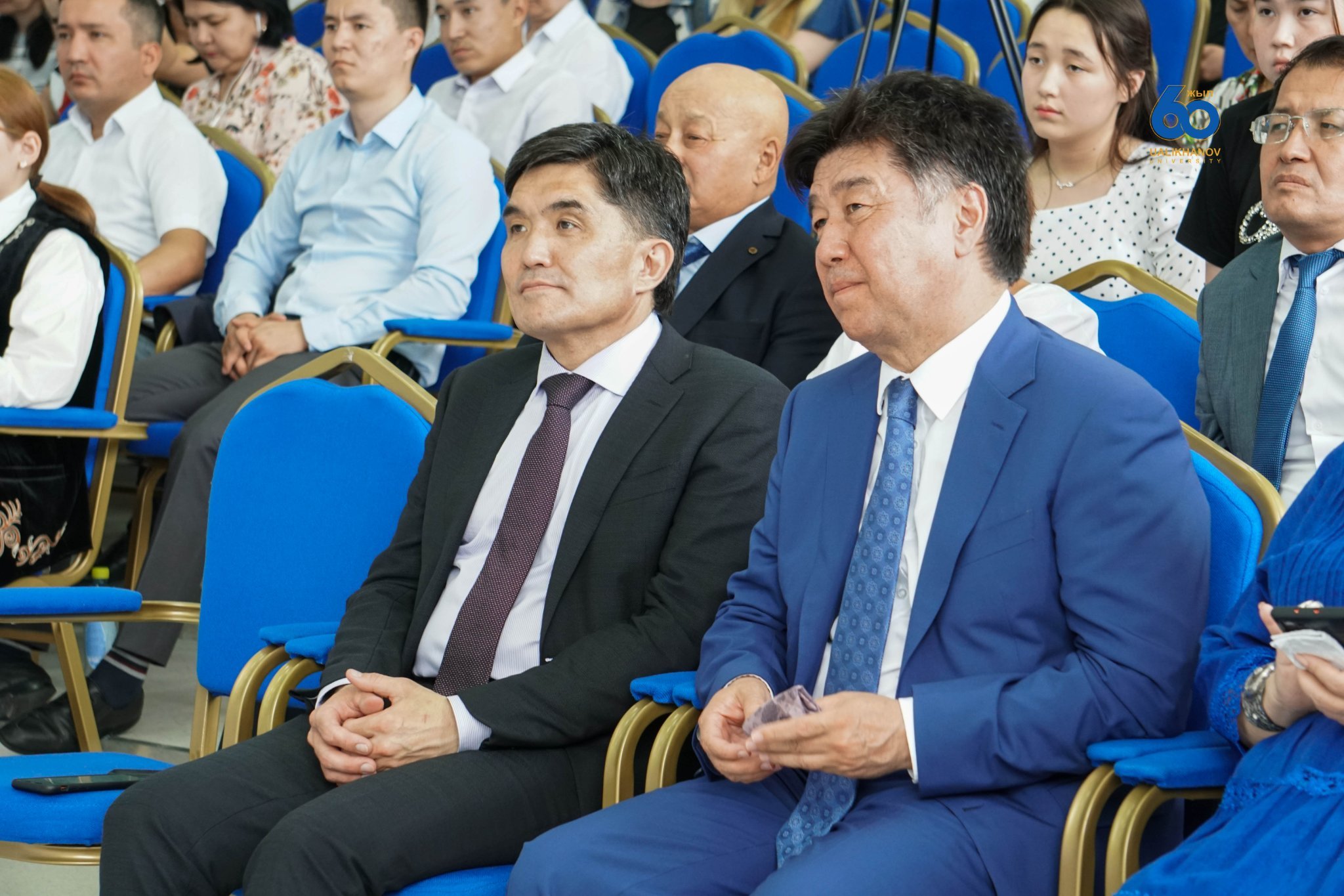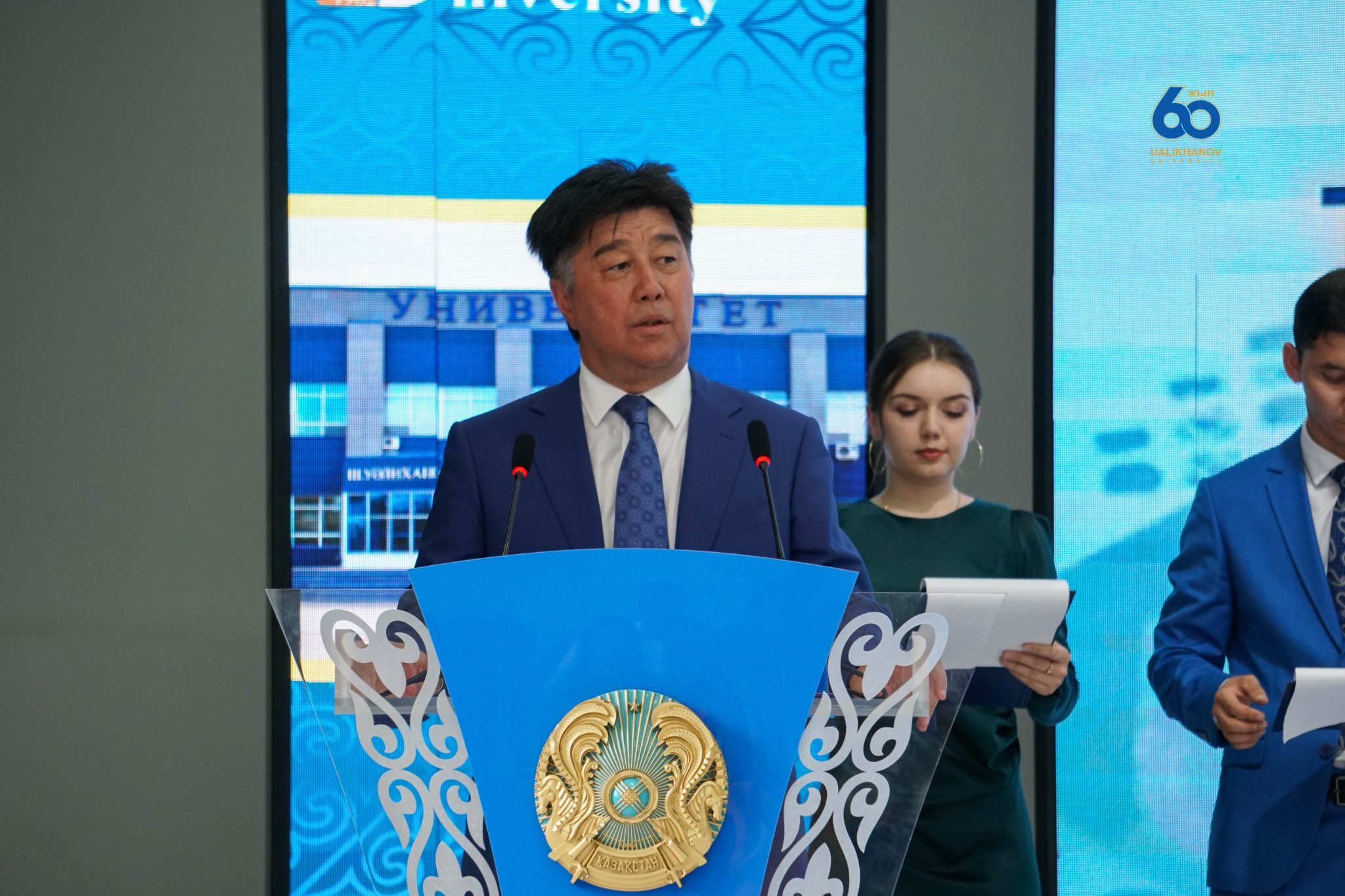 Ректор Марат Кадырович Сырлыбаев зачитал приветственное письмо Министра науки и высшего образования РК Саясата Нурбековича Нурбека.