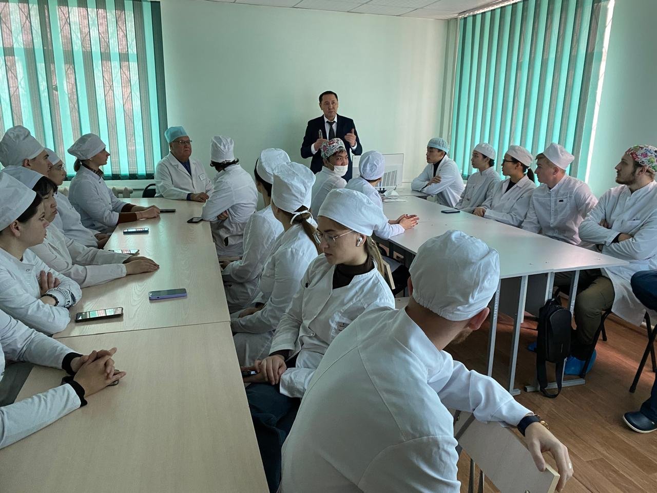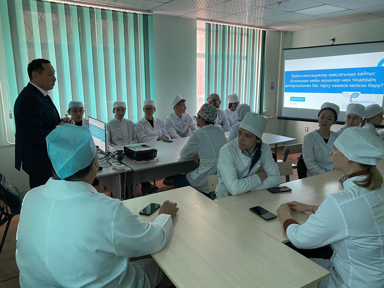 2024 жылғы 31 қазанда Хирургиялық пәндер кафедрасында С. А. Аяғанов меңгерушісінің басшылығымен Жоғары медицина мектебінің 5 курс студенттерінің Қазақстан Республикасы Денсаулық сақтау министрлігінің "Транспланттауды және жоғары технологиялық медициналық қызметтерді үйлестіру жөніндегі республикалық орталық" ШЖҚ РМК директоры Айдар Қанжитайұлымен кездесуін өткізді, сондай-ақ ол донорлық органдарды транспланттауды және аллокациялауды үйлестіру бөлімінің басшысы болып табылады. Студенттермен ҚР-да орган донорлығы мен трансплантологияны дамыту мәселелерін реттейтін негізгі нормативтік құқықтық актілер, сондай-ақ ерік-жігерді тіркеу бөлігінде халық арасында орган донорлығын насихаттау бойынша ақпараттық-түсіндіру жұмыстары жүргізілді. Студенттер белсенді қатысып, әңгімелесу барысында өздерін қызықтырған сұрақтарын қойып, өз пікірлерін білдірді.
