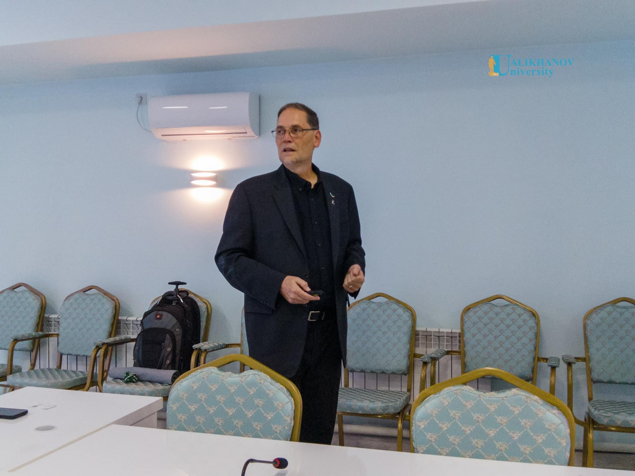 5 қазанда Мичиган мемлекеттік университетінің (Michigan State University) шақырылған профессоры Дуглас Хартман "Қазақстандық білім берудегі сыни ойлау мен мәдениетті дамыту"тақырыбында сөз сөйледі. Профессор Жоғары білім беру саласындағы студенттер мен оқытушылар үшін сыни ойлаудың маңыздылығы туралы айтып өтті. Профессор сыни тұрғыдан ойлаудың әртүрлі стратегияларын қолдану тәжірибесімен бөлісті: алгоритмдердің қалай жұмыс істейтінін түсіну және цифрлық әлемде жауапкершілікті сезіну, сараптамалық бағалау туралы хабардар болу, талдау қабілетінің маңыздылығы.