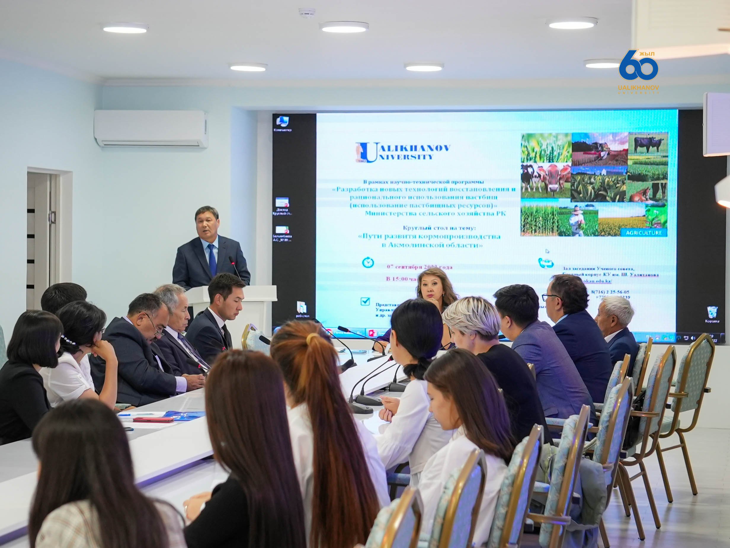 7 сентября текущего года в Кокшетауском университете имени Ш. Уалиханова состоялся Круглый стол – ««ПУТИ РАЗВИТИЯ КОРМОПРОИЗВОДСТВА В АКМОЛИНСКОЙ ОБЛАСТИ» в рамках научно-технической программы «Разработка новых технологий восстановления и рационального использования пастбищ (использование пастбищных ресурсов)» Министерства сельского хозяйства Республики Казахстан, посвященный реализации Послания Главы Государства народу Казахстана «Единство народа и системные реформы – прочная основа процветания страны» по вопросам развития кормопроизводства в Акмолинской области.