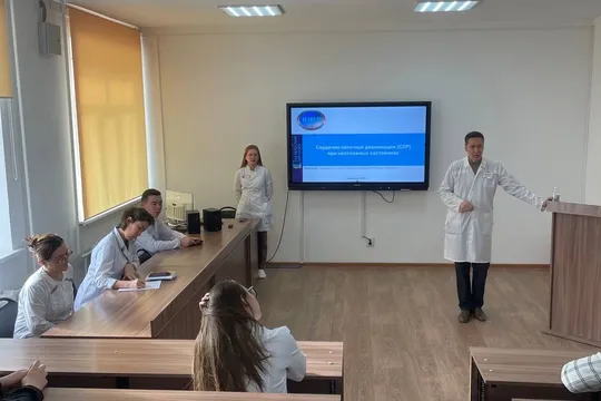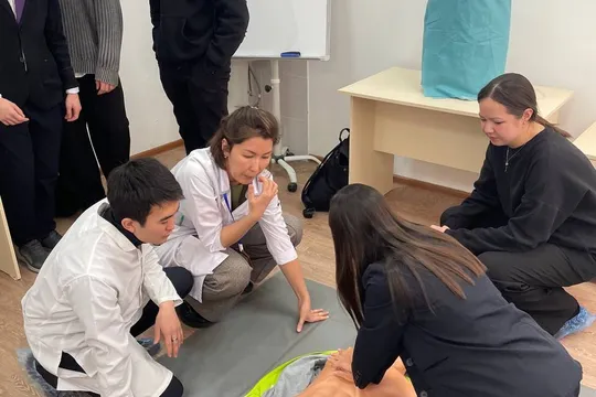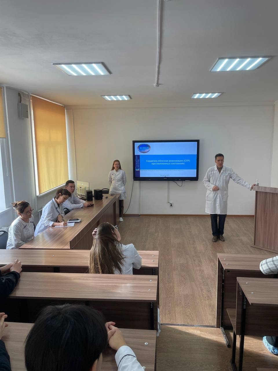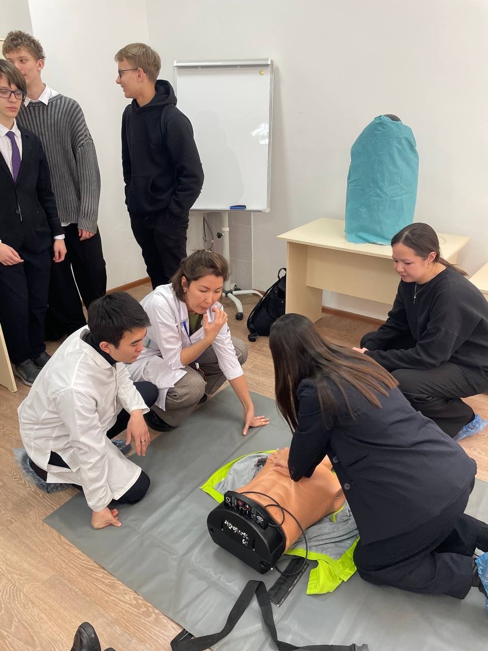 Дәрістен кейін студенттер өз күштерін тәжірибеде сынап көрді: олар студенттер мен оқытушылардың жетекшілігімен манекендерде жүрек-қан тамырлары жаттығуларын жасады және модельдерге инъекциялар енгізді.