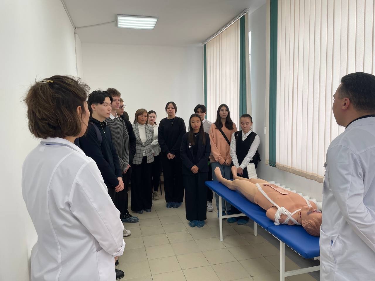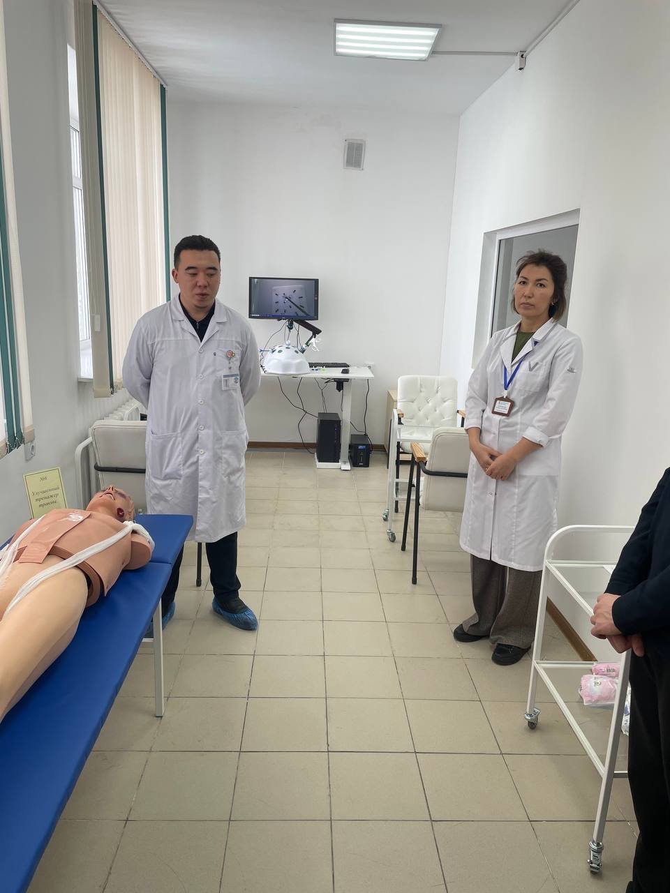 Сондай-ақ студенттер интерн-дәрігер Е.А.Сатыбалдиновпен кездесіп, әңгімелесті, ол оларға лапароскопиялық операциялардың тренажерін көрсетіп, хирургиялық емдеудің заманауи әдістері туралы айтып берді.