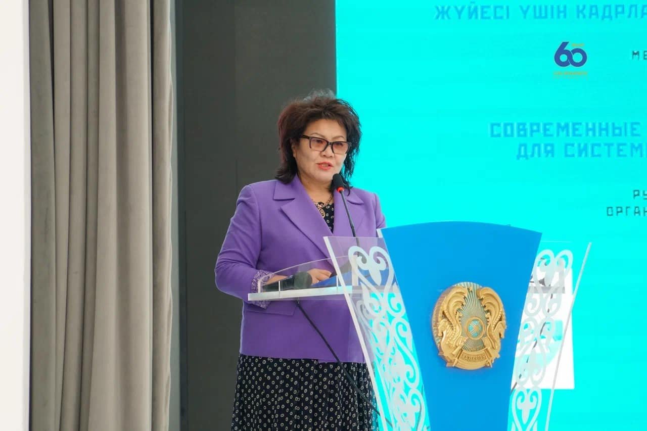 Сондай-ақ, педагогикалық институт директоры А.Т. Бексеитова өз баяндамасында, мектепке дейінгі білім беру жүйесінің оңтайлы мәселелеріне тоқталып, құндылыққа бағытталған білім беру жүйесінің өзекті мәселесіне тоқталып, құттықтау сөз сөйледі.