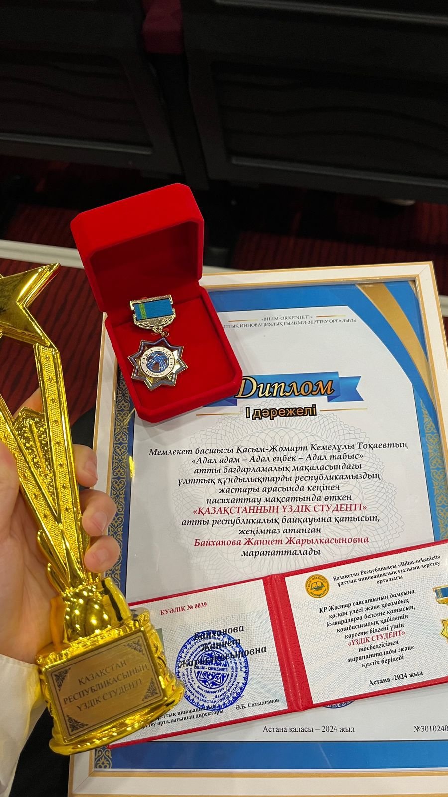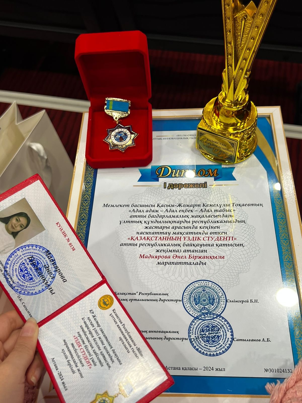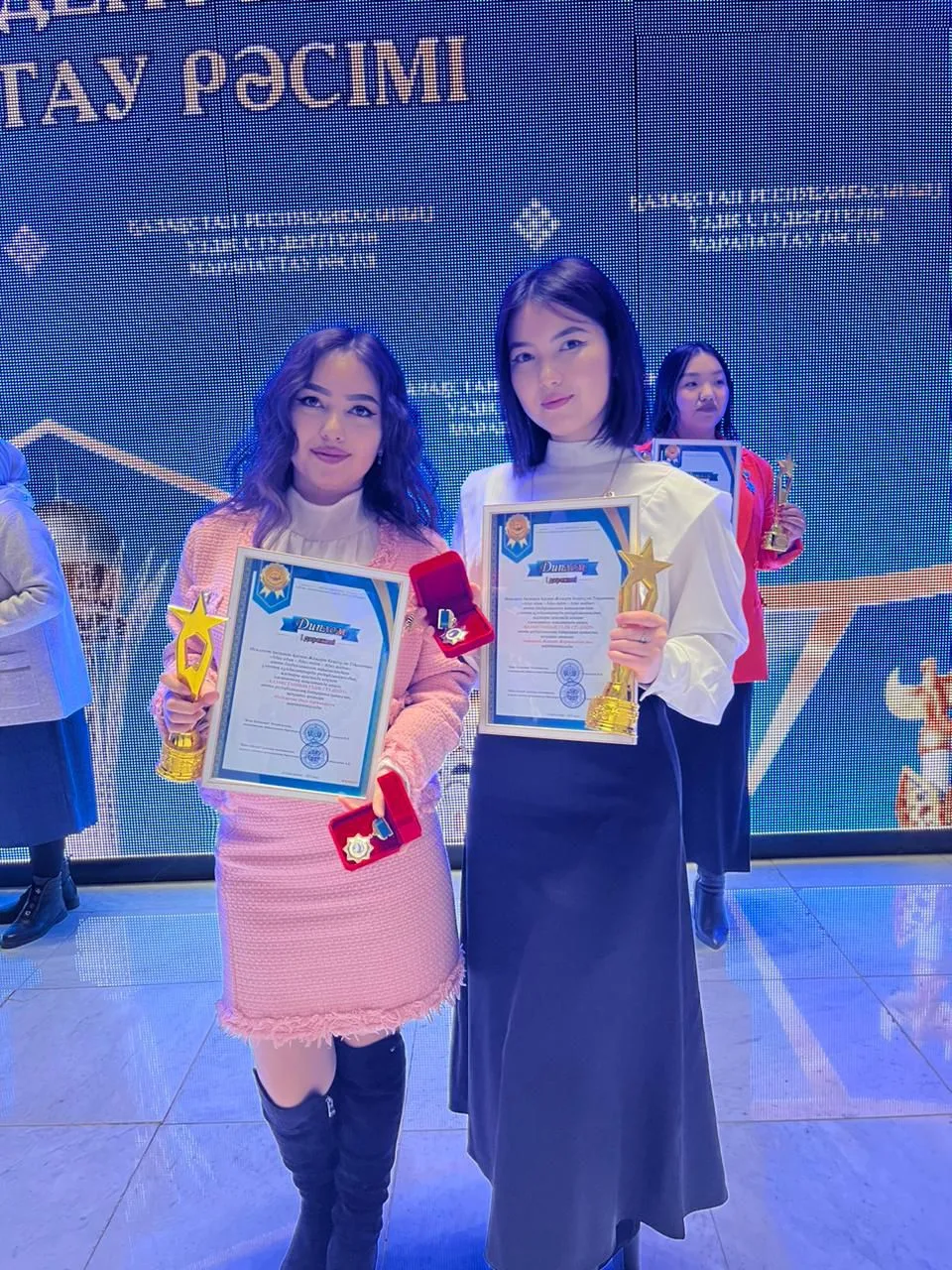 Бұл тамаша қыздар "Қазақстанның үздік студенті" байқауында 1-дәрежелі диплом иегерлері атанды, республикалық "100 үздік студент" байқауы "Bilim-orkenieti" ұлттық инновациялық ғылыми-зерттеу орталығы мен "үздік студенттер академиясы" ұйымдастырған.