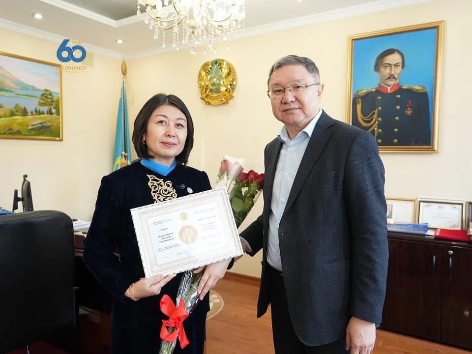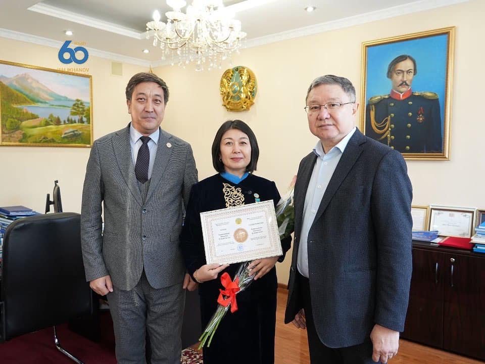 21 ноября 2022 г. в стенах нашего ВУЗа ректор университета Сырлыбаев Марат Кадырович поздравил Бейсембину Айнагуль Елемесовну с победой в республиканском конкурсе «Лучший педагог-2022».
