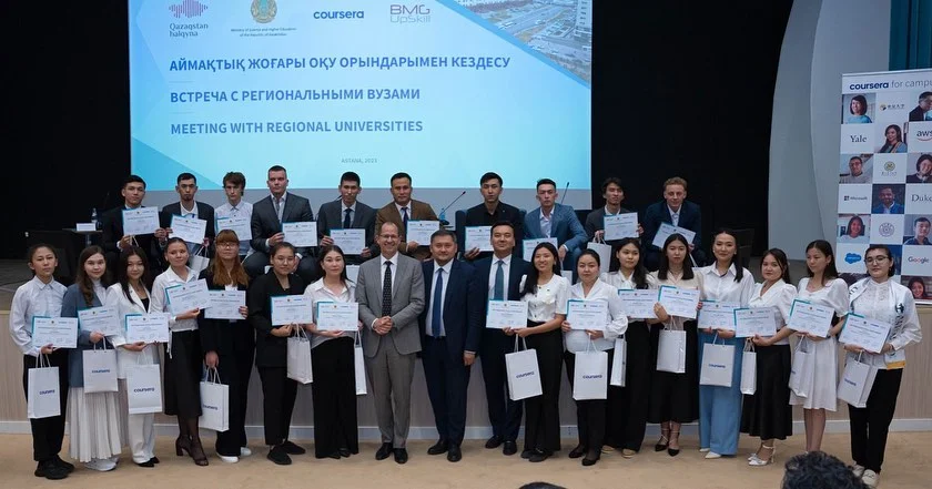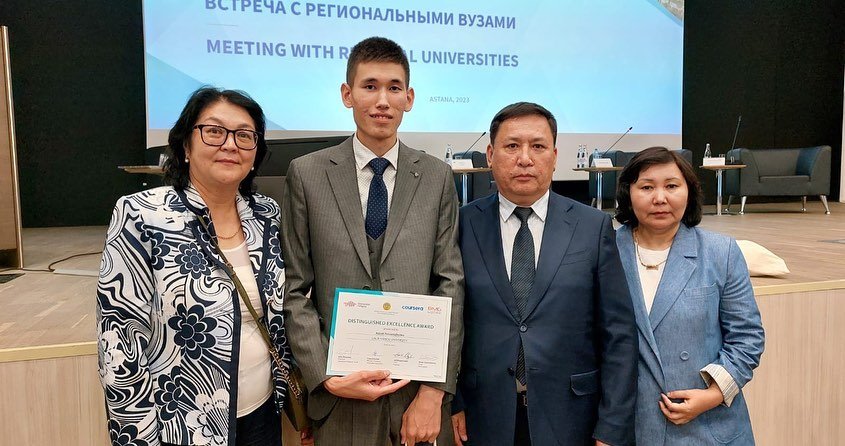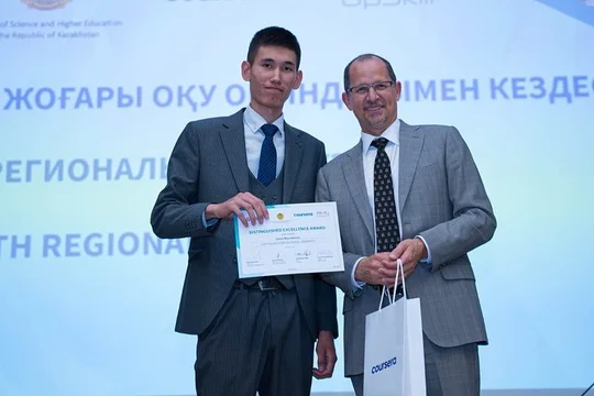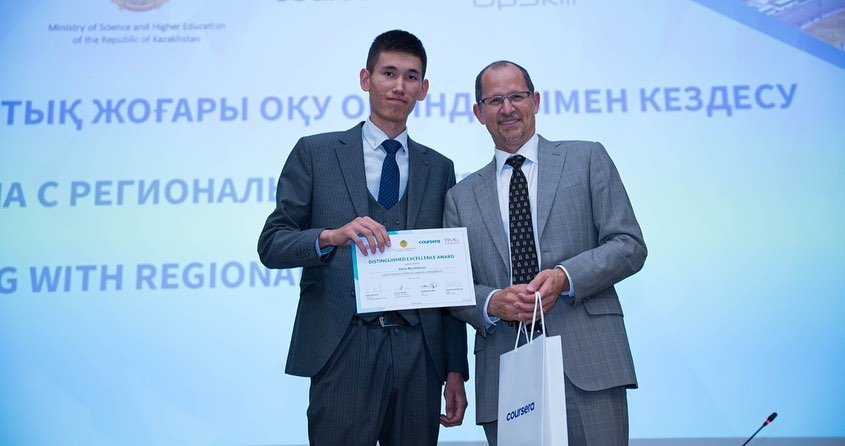 «Мен,Есенжолов Асет Хаирденович,Шоқан Уәлиханов атындағы Көкшетау университетінің,Жоғарғы медицина мектебінің 2 курс студентімін.Курсера білім беру жүйесіндегі ең озық онлайн курстардың бірі болып табылады.Бұл платформаның өте көптеген артықшылықтары бар.Оларға келетін болсақ: бұл курстарды әлемнің ең озық профессорларының сабақ беруі,жүйенің ыңғайлылығы,әрі студенттің тапсырма орындау уақытын өзі таңдауы.Осындай тамаша платформадан білім шыңдауға мол үлес қосқан-Қазақстан Республикасының Ғылым және жоғары білім министрі Саясат Нұрбек мырзаға және Coursera білім беру жүйесінің бас директоры Джефф Маджонкальдаға ерекше алғысымды білдіргім келеді.»