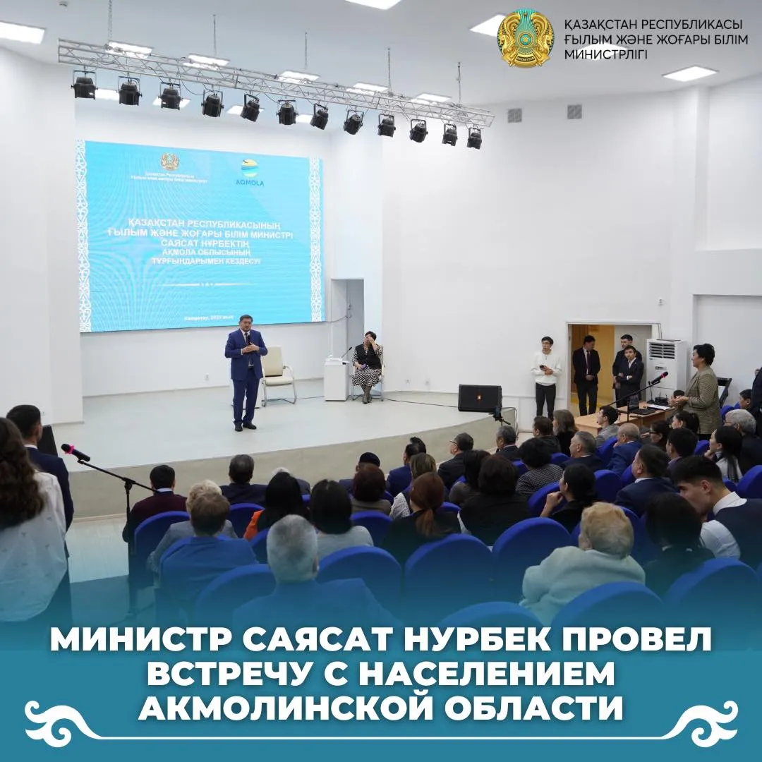Бүгін ҚР Ғылым және жоғары министрі Саясат Нұрбек Ақмола облысында өңір тұрғындарымен кездесу өткізді.Саясат Нұрбек 2023 жылғы Қазақстандағы ғылым және жоғары білім саласындағы негізгі жетістіктер мен нәтижелерге шолу жасады. Ол өз сөзінде еліміздің болашақ дамуы үшін білім және ғылым саласын кеңейтудің маңыздылығын атап өтіп, Министрліктің стратегиялық мақсаттары мен басымдықтарымен бөлісті.Білім беру сапасын жақсартуға, ғылыми зерттеулерді қолдауға бағытталған жоспарлар мен міндеттерге басты назар аударылды. Сондай-ақ, жаңа технологиялық және әлеуметтік өзгерістерге сәтті бейімделу қажеттілігі баса айтылды.“Мемлекет басшысының тапсырмасына сәйкес сайлауалды бағдарламада ғылымды қаржыландыруды кезең-кезеңімен ұлғайту бойынша мақсатты жұмыс жүргізілуде. Соңғы үш жылда ғылымды қаржыландыру 3 есе өсті. Қазақстанда ғылым бар. Бұған біздің ғалымдардың жарқын жаңалықтары дәлел бола алады. Университет ғылымына көптеген жастар тартылуда. Енді сіз ай сайын жаңа жобалар, нақты жетістіктер туралы естисіз”, - деп атап өтті министр.С.Нұрбек Қазақстанда білім мен ғылымды табысты дамытудың негізгі факторы ретінде билік, білім беру мекемелері мен қоғам арасындағы әріптестік қатынастар әрі өзара іс-қимылды орнатудың маңыздылығына тоқталды.Өз сөзінің соңында ведомство басшысы биліктің, білім беру мекемелері мен қоғамның бірлескен күш-жігері қазіргі әлемдегі Білім және ғылым жүйесінің алдында тұрған сын-қатерлерді еңсеру үшін қолайлы жағдайлар жасайтынына сенім білдірді. Тығыз ынтымақтастық пен инновацияларды енгізу арқылы ғана біз білім берудің жоғары сапасын қамтамасыз ете алатынымызды, сондай-ақ тез өзгеретін технологиялық және әлеуметтік талаптарға сәтті бейімделе алатынымызды алдыға тартты. Халық оқу гранттарына, ЖОО инфрақұрылымына, басқа өңірлерден студенттерді тартуға қатысты сұрақтар қойды.Сондай-ақ, "Серпін" гранттық бағдарламасын қамтуды ұлғайтуды, студенттердің бакалавриатта оқу мерзімін қысқартуды қарастыру туралы ұсыныс шығарылды.Министр осы сұрақтарға толық жауап беру арқылы Astana IT University мысалын келтірді."Astana IT University базасында Кредиттік сағаттарды қысқартпай және оқу процесіне зиян келтірмей 3 жылдық бакалавриаттың пилоттық жобасы енгізілді. Қазір бұл жаңалық сәтті жұмыс істеп жатыр деп айтуға болады. Оқудың үшінші жылында жұмыс берушілер өз курстарымен сөз сөйлейді, практикаға, жұмысқа шақырады. Сондай - ақ, университеттерге адъюнкт-профессураны енгізуді бастаймыз, нарықтың үздік мамандары ЖОО-лар мен студенттер бұдан әрі жұмыс істеу үшін қандай білім мен дағдылар қажет екенін ескеруі үшін оқыту жүргізеді", - деп атап өтті ведомство басшысы.Саясат Нұрбек өз сөзін еліміздің білім және ғылым саласындағы жаңа белестерге табысты жолын қамтамасыз ету мақсатында әріптестік пен өзара іс-қимылды одан әрі дамытуға шақырумен аяқтады.Айта кетейік, өңір тұрғындарымен кездесуден кейін министр азаматтармен жеке қабылдау өткізді.