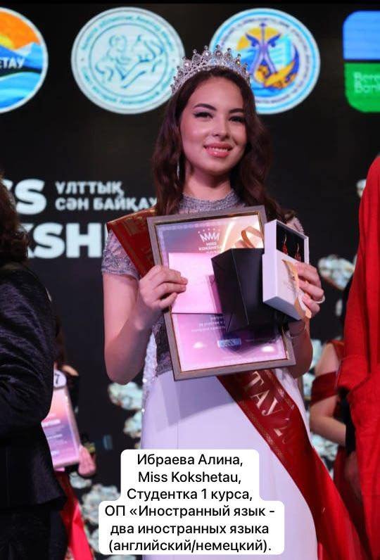Қазылар алқасының шешімі бойынша, «Мисс Көкшетау – 2025» атағы мен көптен күткен тәждің иегері атанды —Ибраева Алина Маратовна,Ш.Уәлиханов атындағы Көкшетау университетінің«Шетел тілі: екі шетел тілі (ағылшын, неміс/қытай)» мамандығының 1 курс студенті.