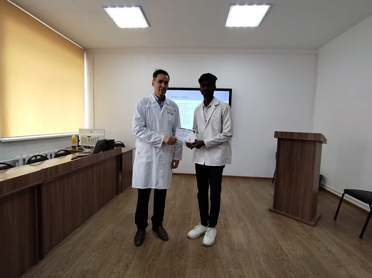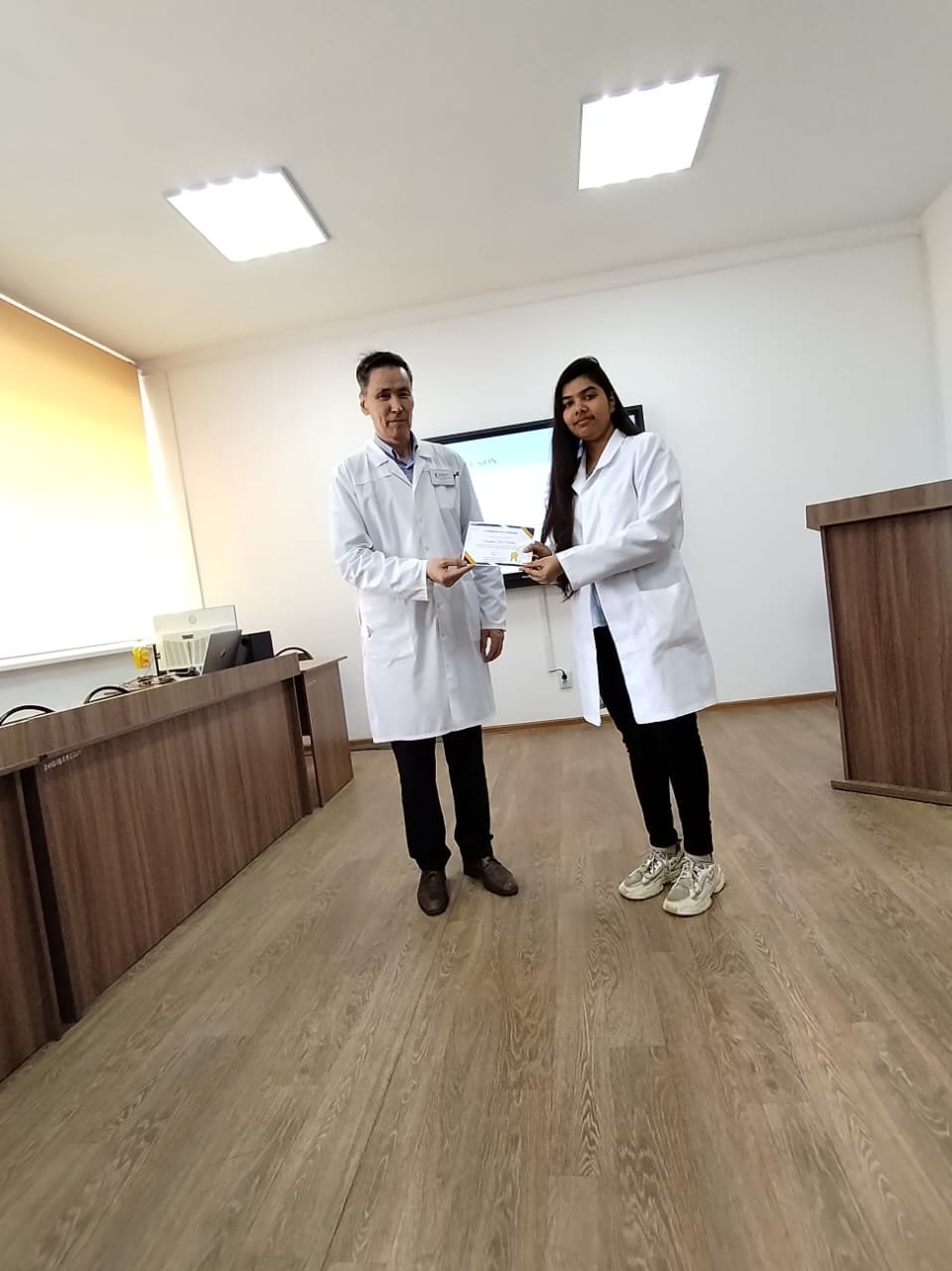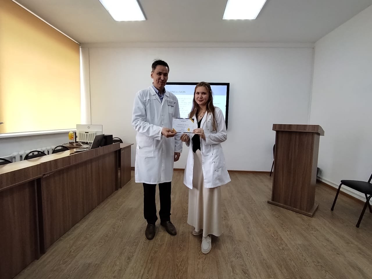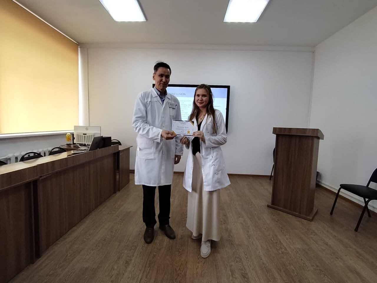 2024 жылғы 11 сәуірде морфология, физиология және жалпы патология кафедрасының базасында Жоғары медицина мектебінің студенттері арасында «Медициналық жаңа сын-қатерлер мен шешімдер: Студенттік ғылыми көзқарас» атты студенттік ғылыми конференция өтті.Конференцияны құттықтау сөзімен морфология, физиология және жалпы патология кафедрасының меңгерушісі, медицина ғылымдарының кандидаты Жанғалов Бануаржан Баянович ашты.