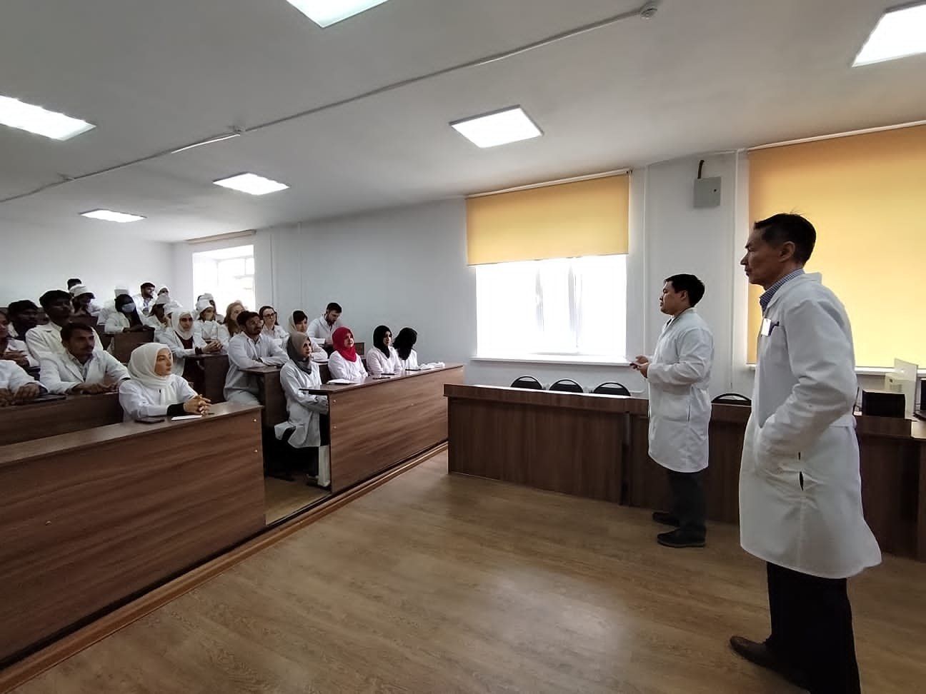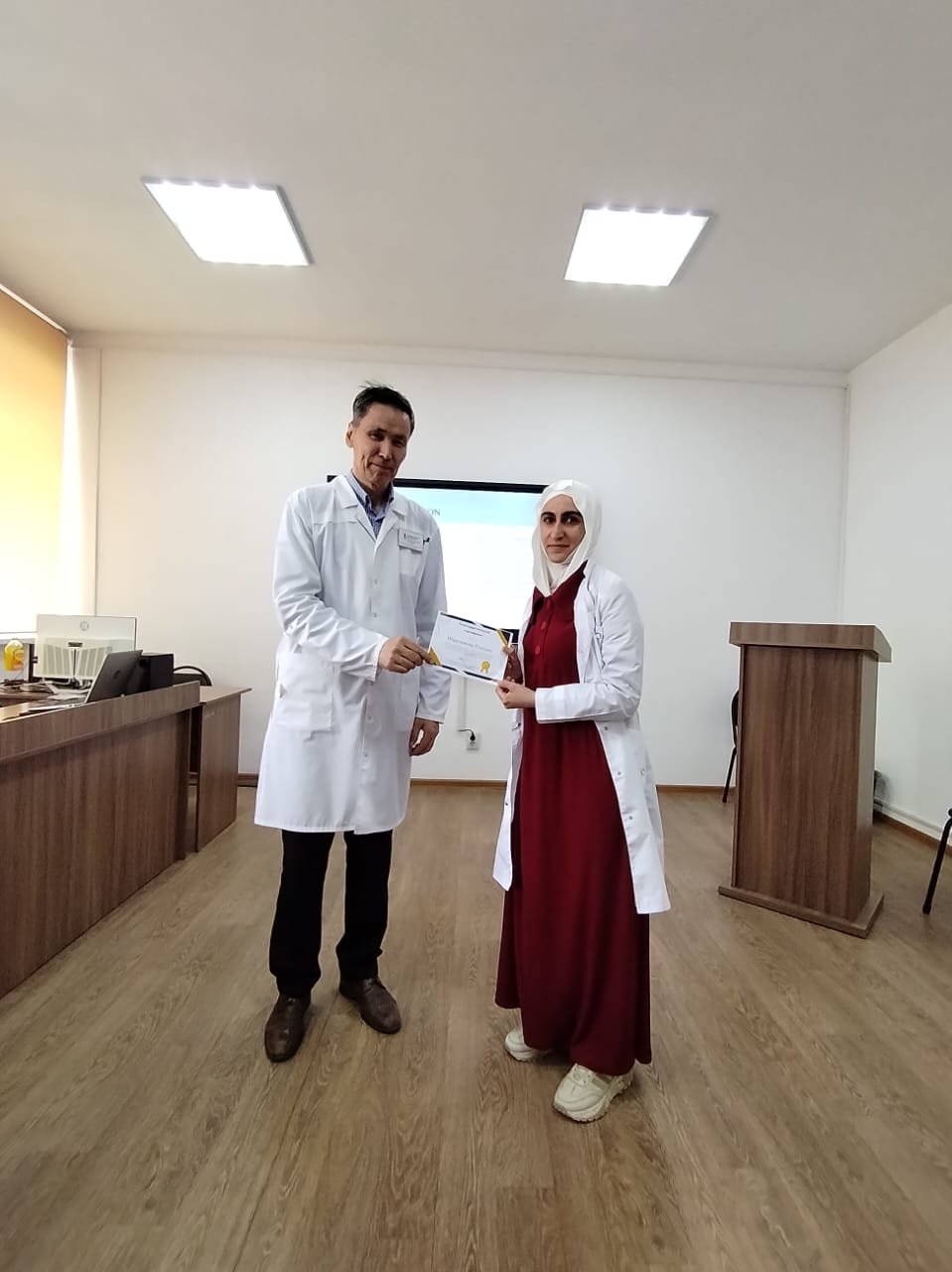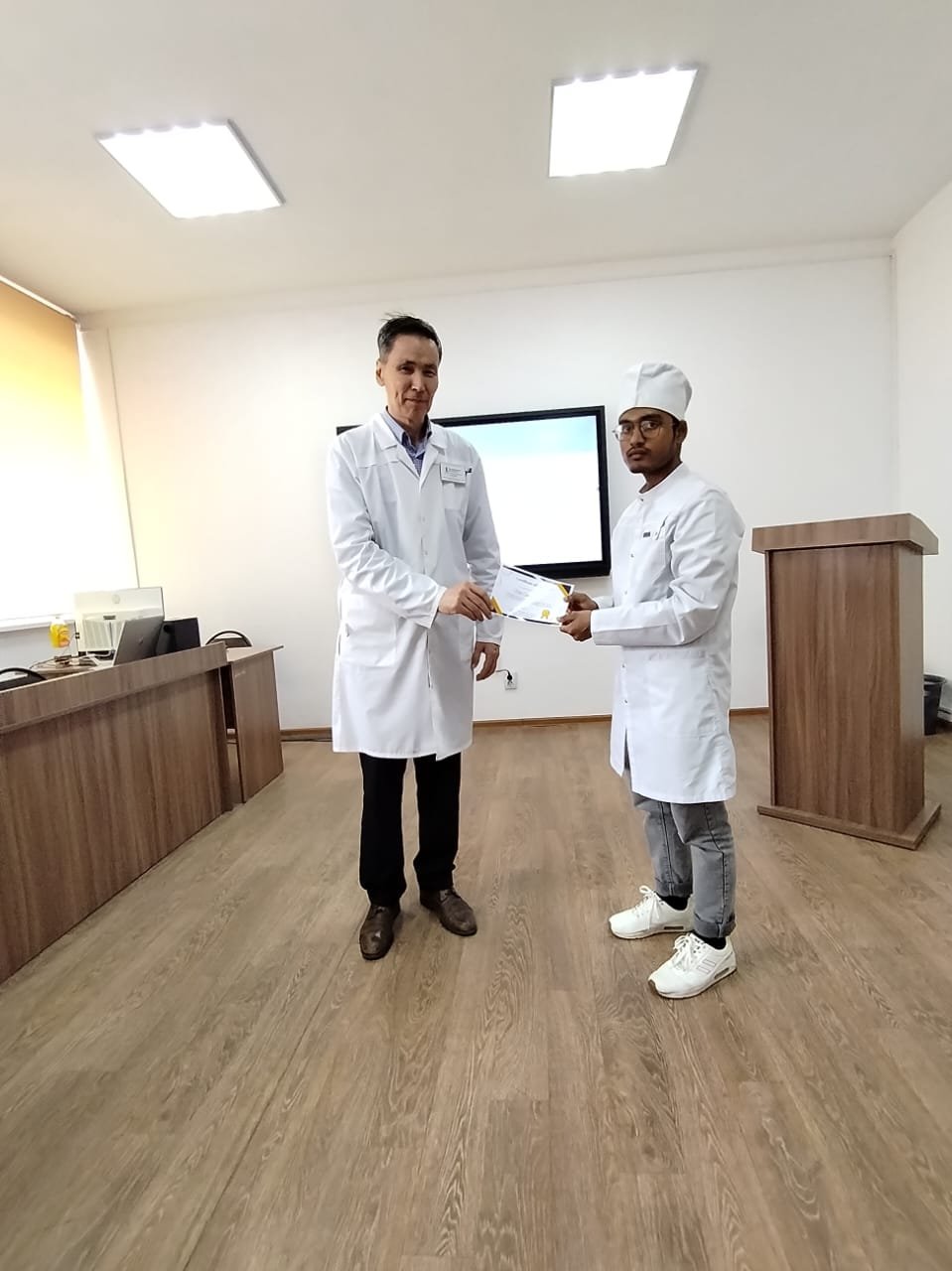 2024 жылғы 11 сәуірде морфология, физиология және жалпы патология кафедрасының базасында Жоғары медицина мектебінің студенттері арасында «Медициналық жаңа сын-қатерлер мен шешімдер: Студенттік ғылыми көзқарас» атты студенттік ғылыми конференция өтті.Конференцияны құттықтау сөзімен морфология, физиология және жалпы патология кафедрасының меңгерушісі, медицина ғылымдарының кандидаты Жанғалов Бануаржан Баянович ашты.