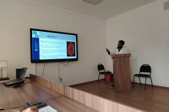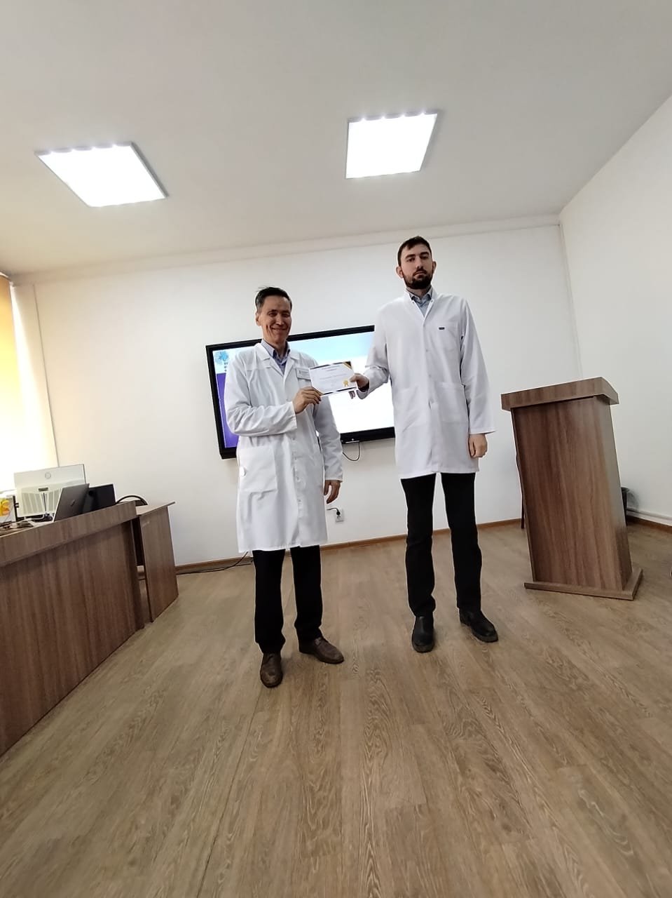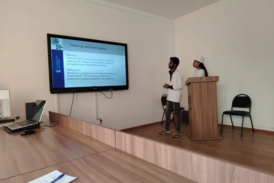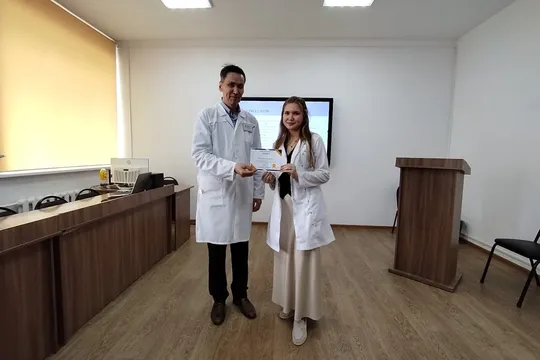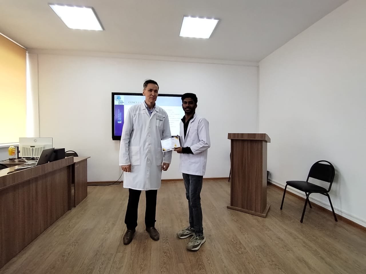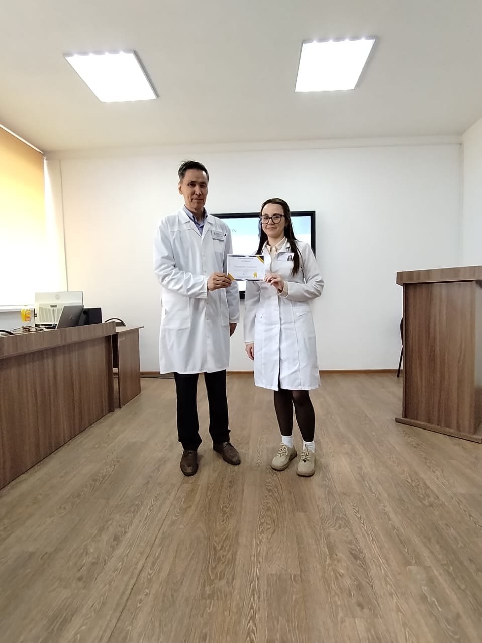 2024 жылғы 11 сәуірде морфология, физиология және жалпы патология кафедрасының базасында Жоғары медицина мектебінің студенттері арасында «Медициналық жаңа сын-қатерлер мен шешімдер: Студенттік ғылыми көзқарас» атты студенттік ғылыми конференция өтті.Конференцияны құттықтау сөзімен морфология, физиология және жалпы патология кафедрасының меңгерушісі, медицина ғылымдарының кандидаты Жанғалов Бануаржан Баянович ашты.
