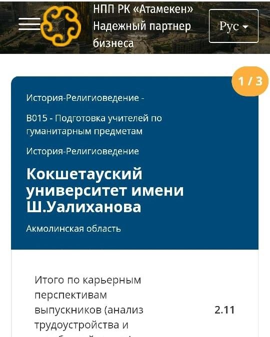 «Атамекен» Ұлттық кәсіпкерлер палатасы Ғылым және жоғары білім министрлігімен бірге жетінші жыл бойы қазақстандық жоғары оқу орындарының білім беру бағдарламаларына тәуелсіз бағалау жүргізіп келеді.📚 Биылғы жылдың қорытындысы бойынша -🎓 "Тарих және дінтану" бағдарламасы 1️⃣ орында, 🎓 "Тарих география" бағдарламасы 6️⃣ орында!⚜️ Рейтинг көрсеткіштерімен кафедрамыздың ұжымын құттықтаймыз! 👏👏👏Болашақта да еңбектеріміз жоғары бағаланып, биіктерден көріне берейік!💐
