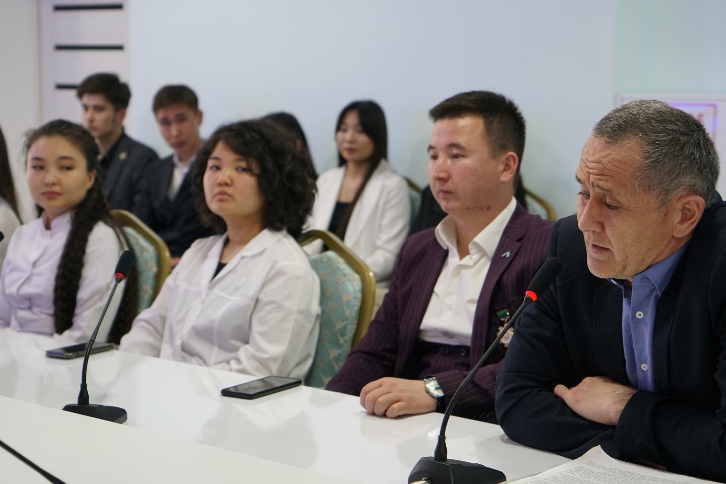 Дөңгелек үстел жұмысына университетіміздің бірінші проректоры Байтук Ғалым Симбекұлы, құқық кафедрасының лекторы Наурызбаев Ерлан Амангелдіұлы қатысып, студенттерге рәміздердің қадірі мен маңыздылығы жайлы айтып өтті.